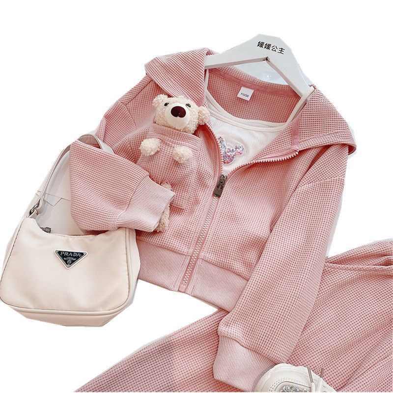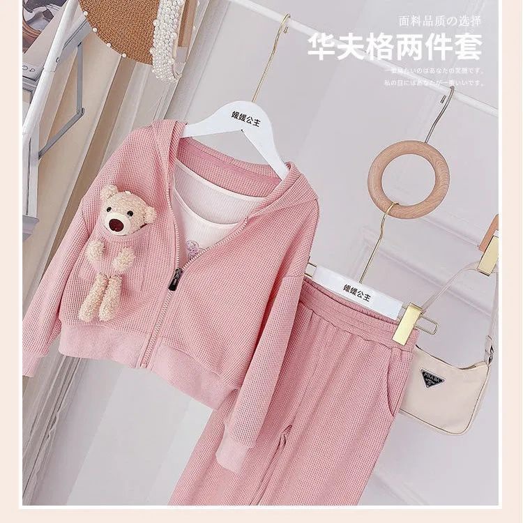 봄 가을 소녀 세트 서양식 어린이 성격 유행 한국 스타일 3 차원 만화 후드 자켓 유행 스포츠 바지