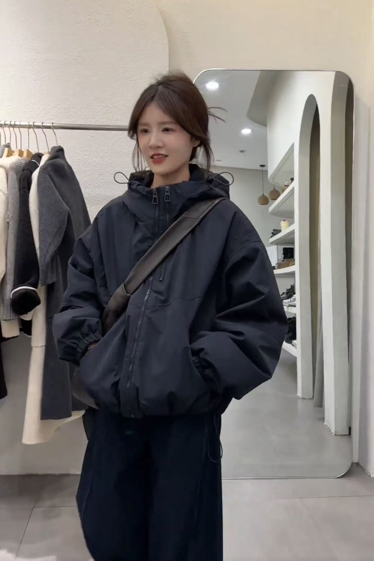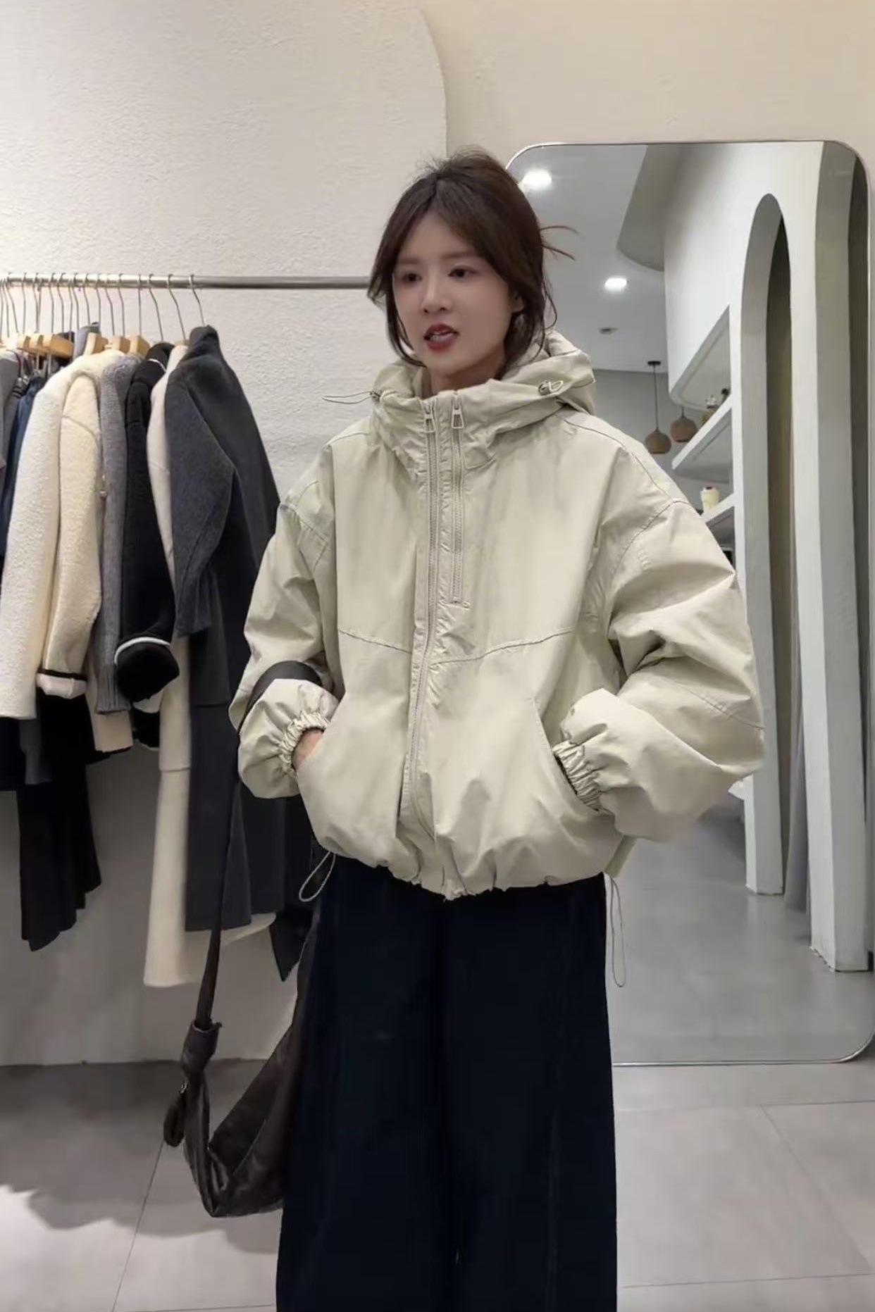 게으른 스타일 더블 지퍼 디자인 코트 여성의 2025 봄과 가을 하이 엔드 방풍 재킷 캐주얼 재킷스토어 가기