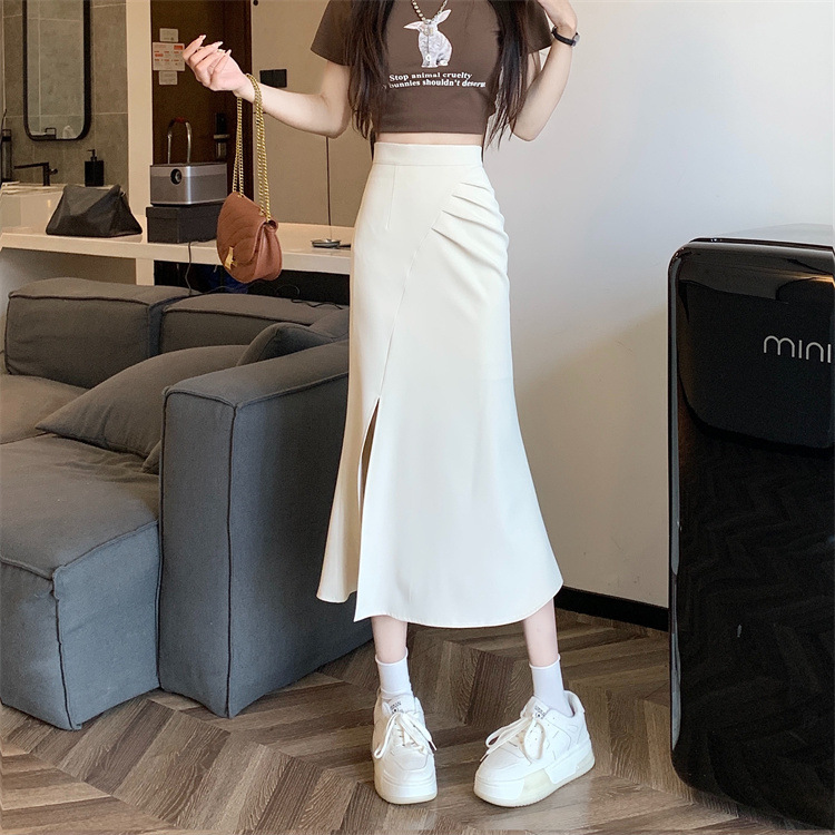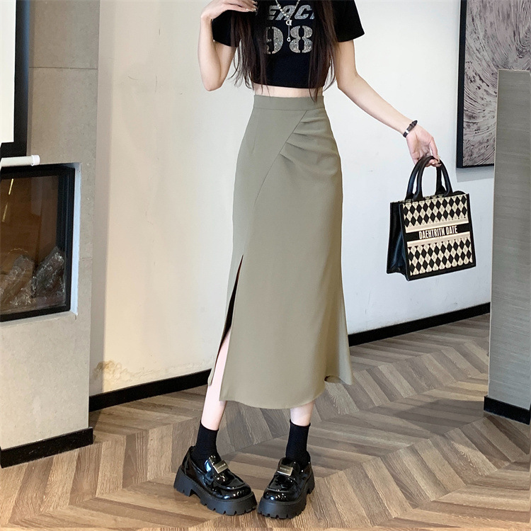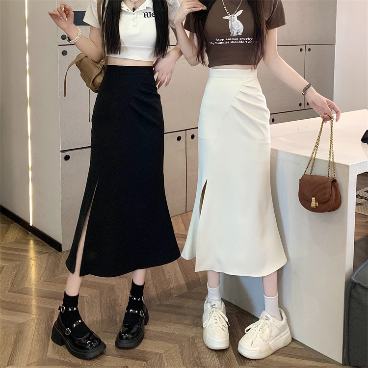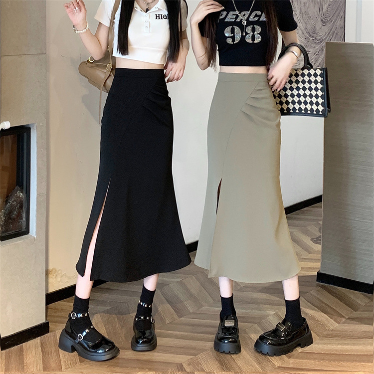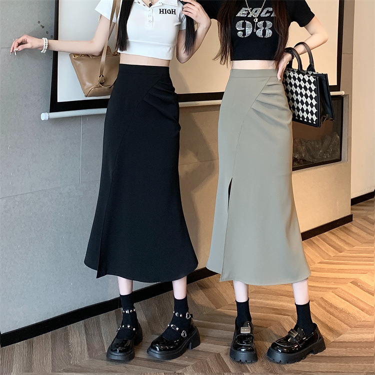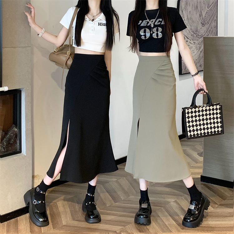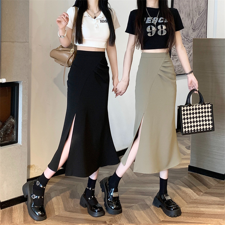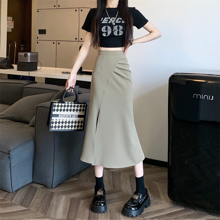 디자인 분할 세트 Fishtail 치마 여성의 여름 높은 허리 배꼽 덮음 치마를 덮는 치마를 덮는 중간 길이의 힙합 스커트스토어 가기