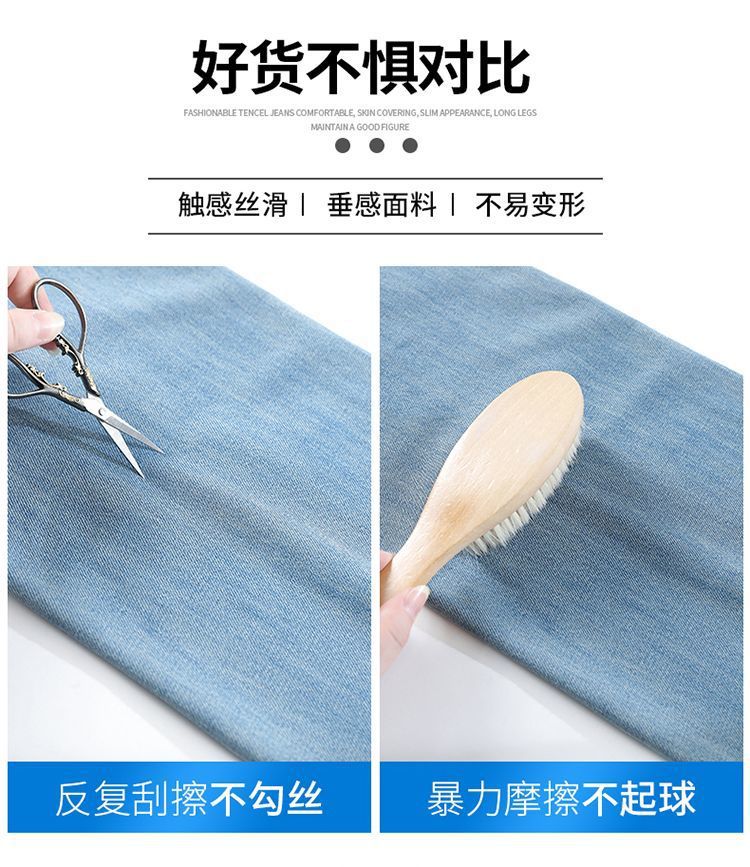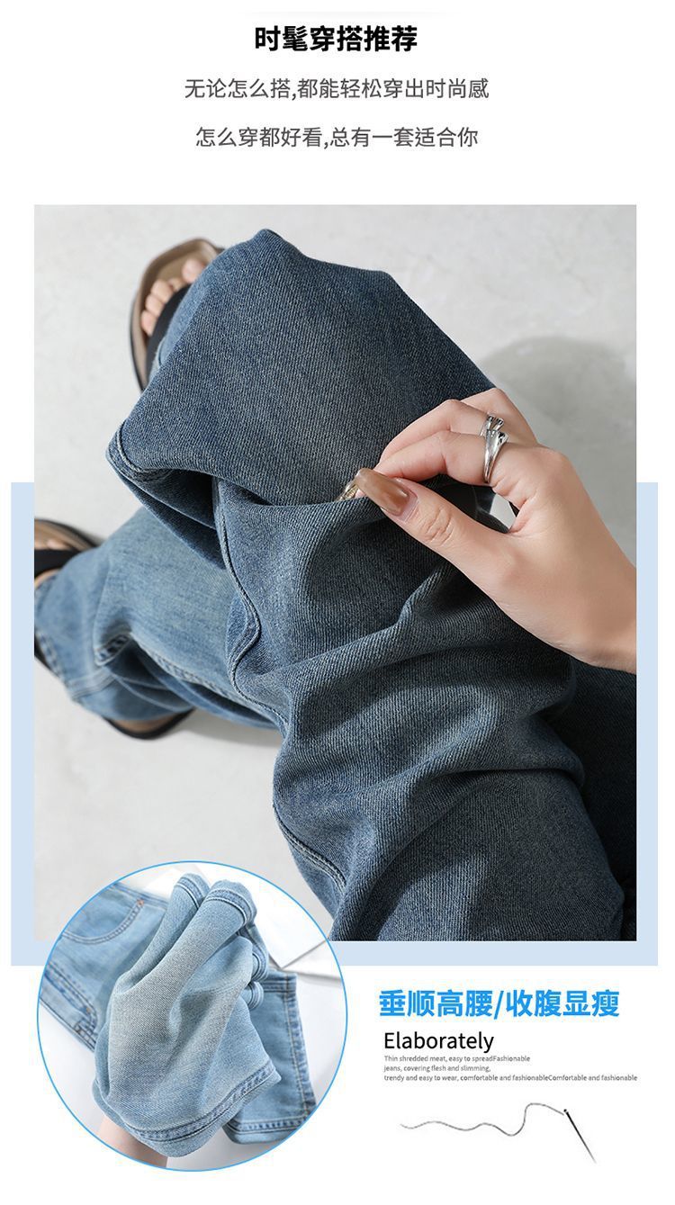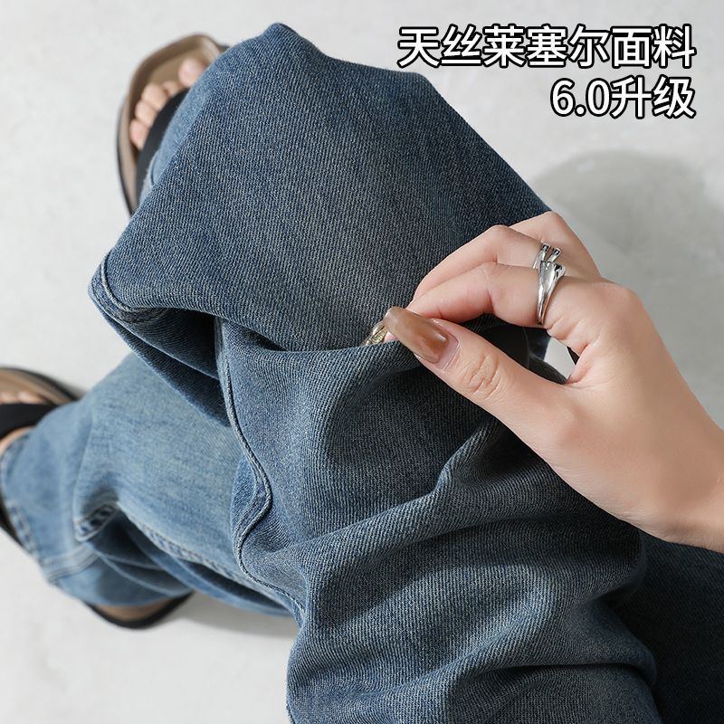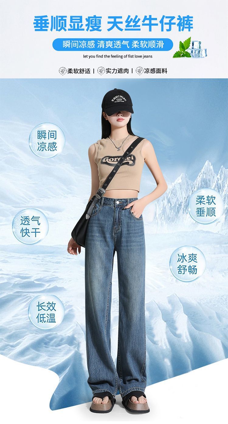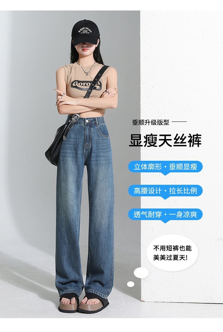 Tencel 얇은 청바지 여자 2025 새로운 여름 높은 허리 느슨한 투약 아이스 실크 여자의 스트레이트 와이드 다리 바지스토어 가기