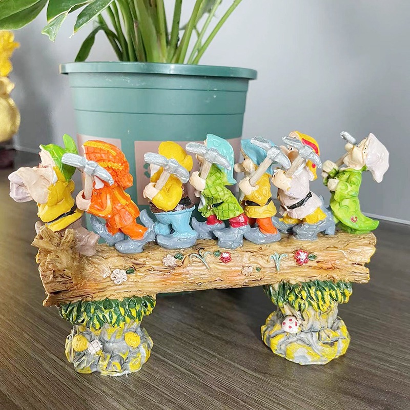 국경 간 일곱 난쟁이 그루터기 난쟁이 정원 동상 안뜰 장식 장식품 크리스마스 수지 공예 도매