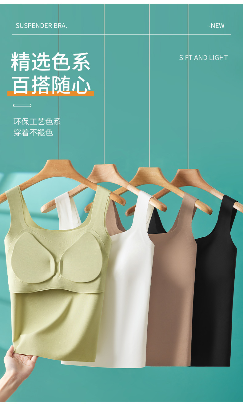 아이스 실크 비 마킹 작은 스트랩 스퀘어 칼라 조끼 여성 벨트 가슴 패드 통합 마모없는 브래지어 아름다운 내부 상단