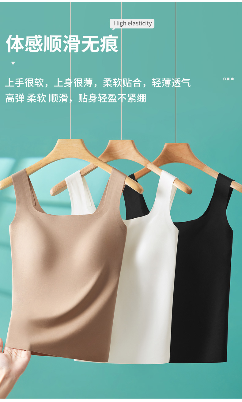 아이스 실크 비 마킹 작은 스트랩 스퀘어 칼라 조끼 여성 벨트 가슴 패드 통합 마모없는 브래지어 아름다운 내부 상단스토어 가기