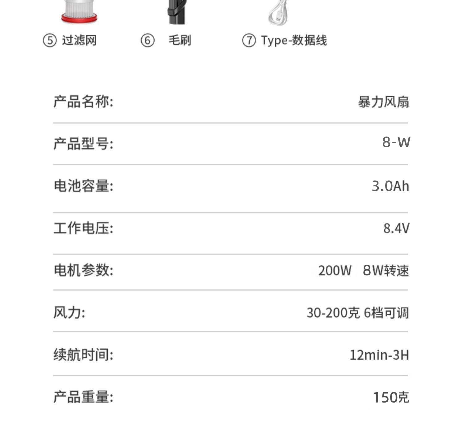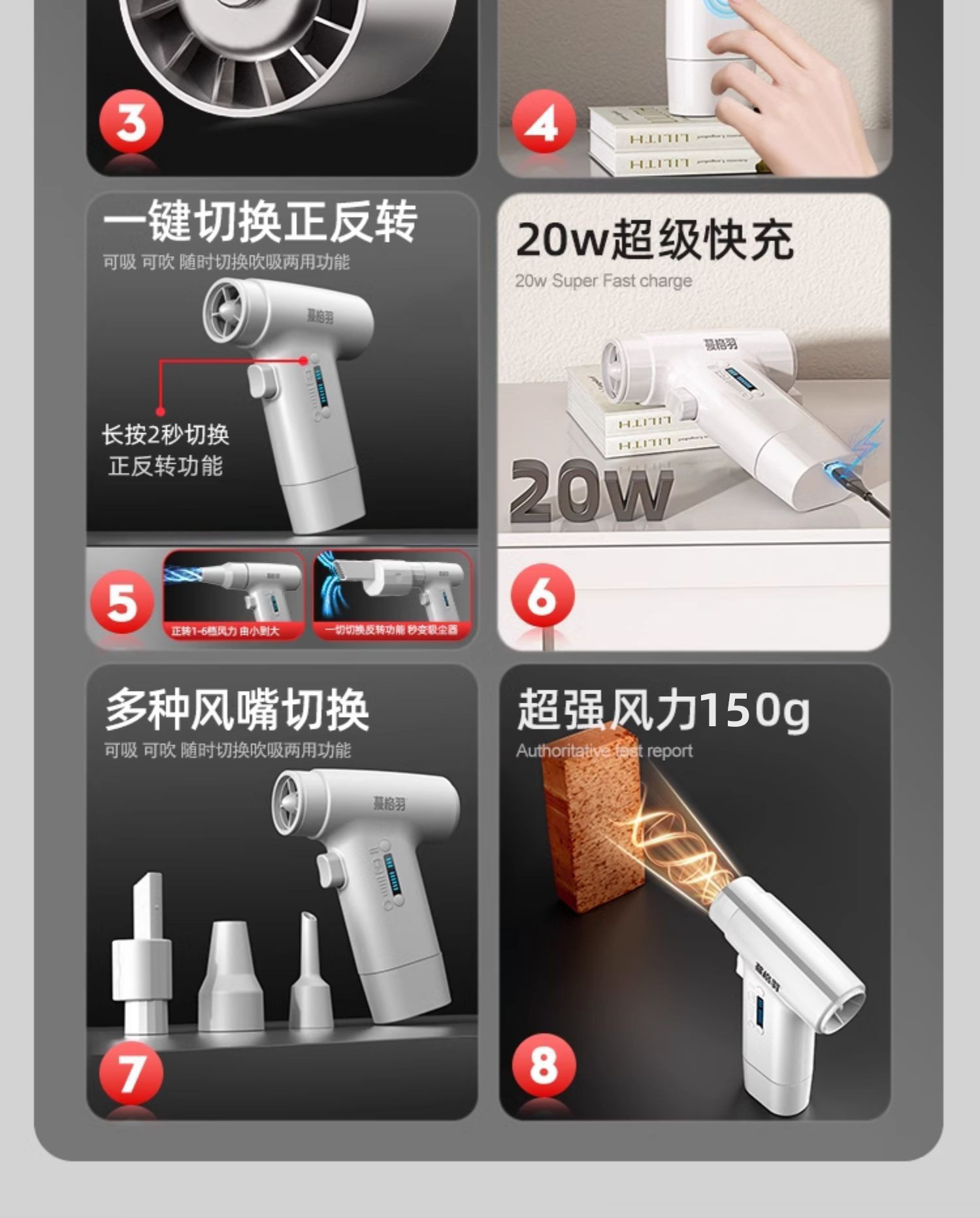 • 흰색 80k ~ 150g 풍력 [8.0AH 배터리] 송풍 및 흡입 겸용 세트