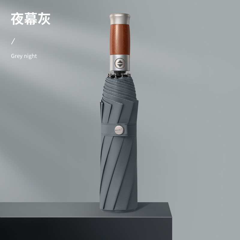 • 고급 나무 손잡이 30 리브 자동 우산 나이트 그레이