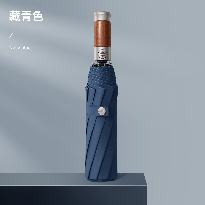 • 고급 나무 손잡이 30 리브 자동 우산 - 네이비 블루