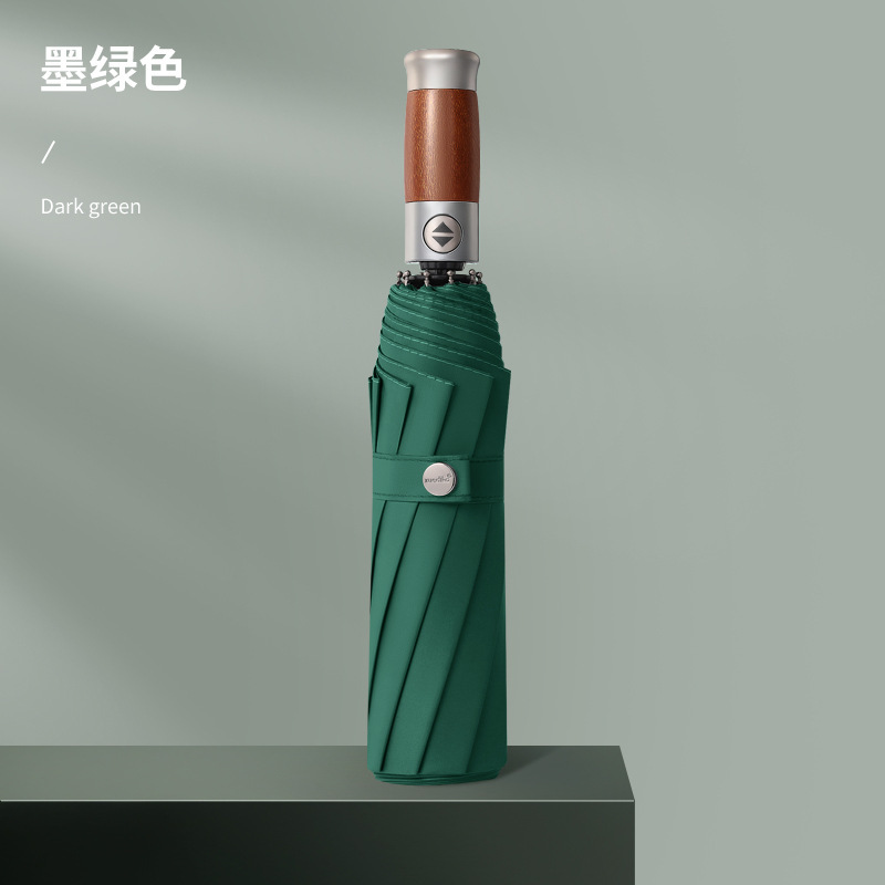 • 고급 나무 손잡이 30 리브 자동 우산 - 진한 녹색