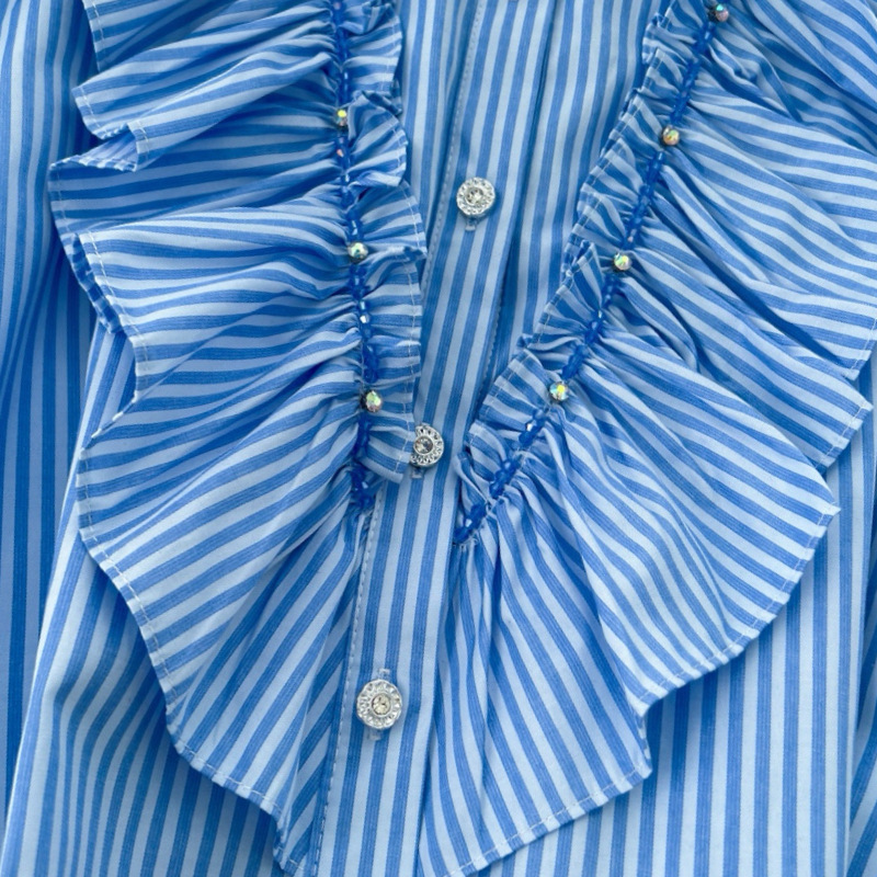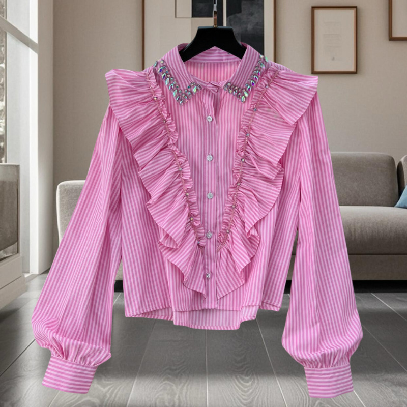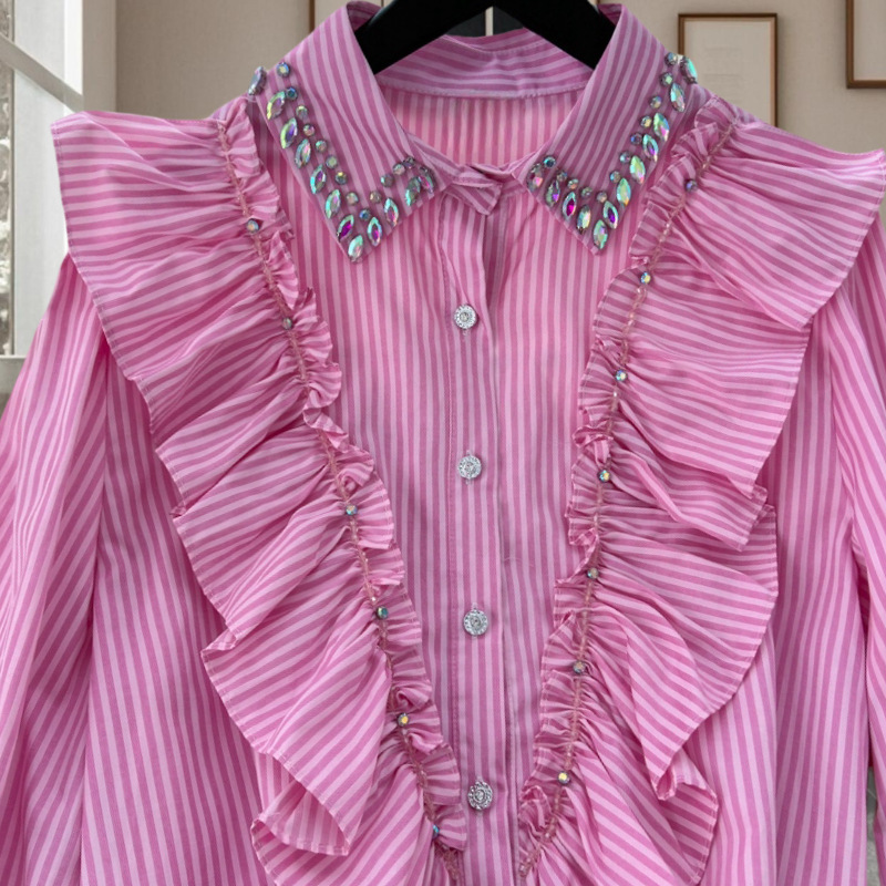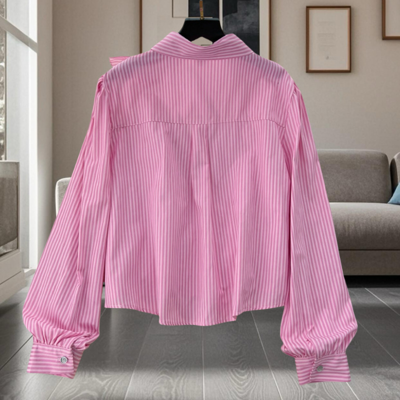 디자인 센스 틈새 세련된 최고 여성의 봄과 가을 슈퍼 요정 레트로 부드러운 코트 스타일 첫사랑 우아한 쉬폰 셔츠