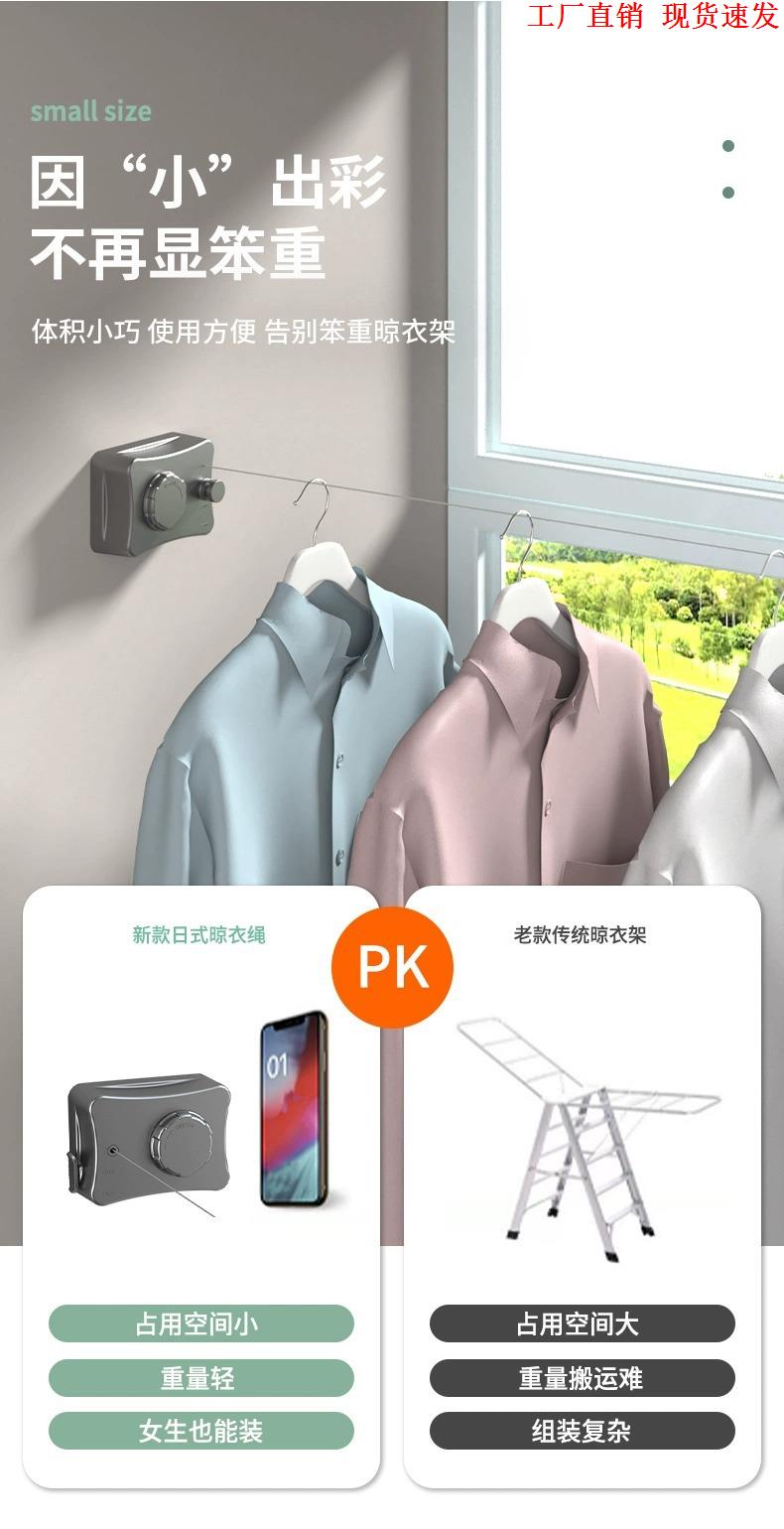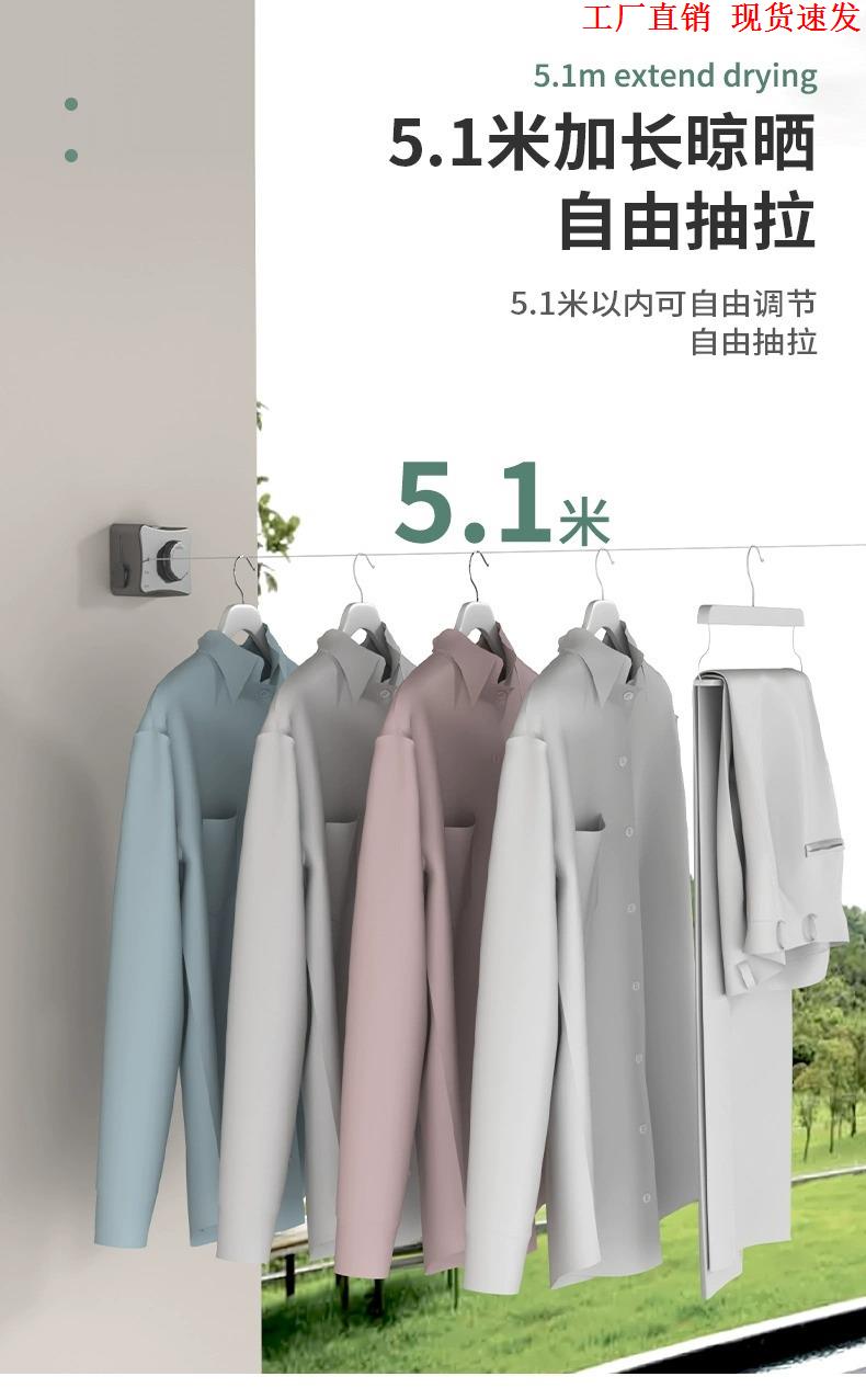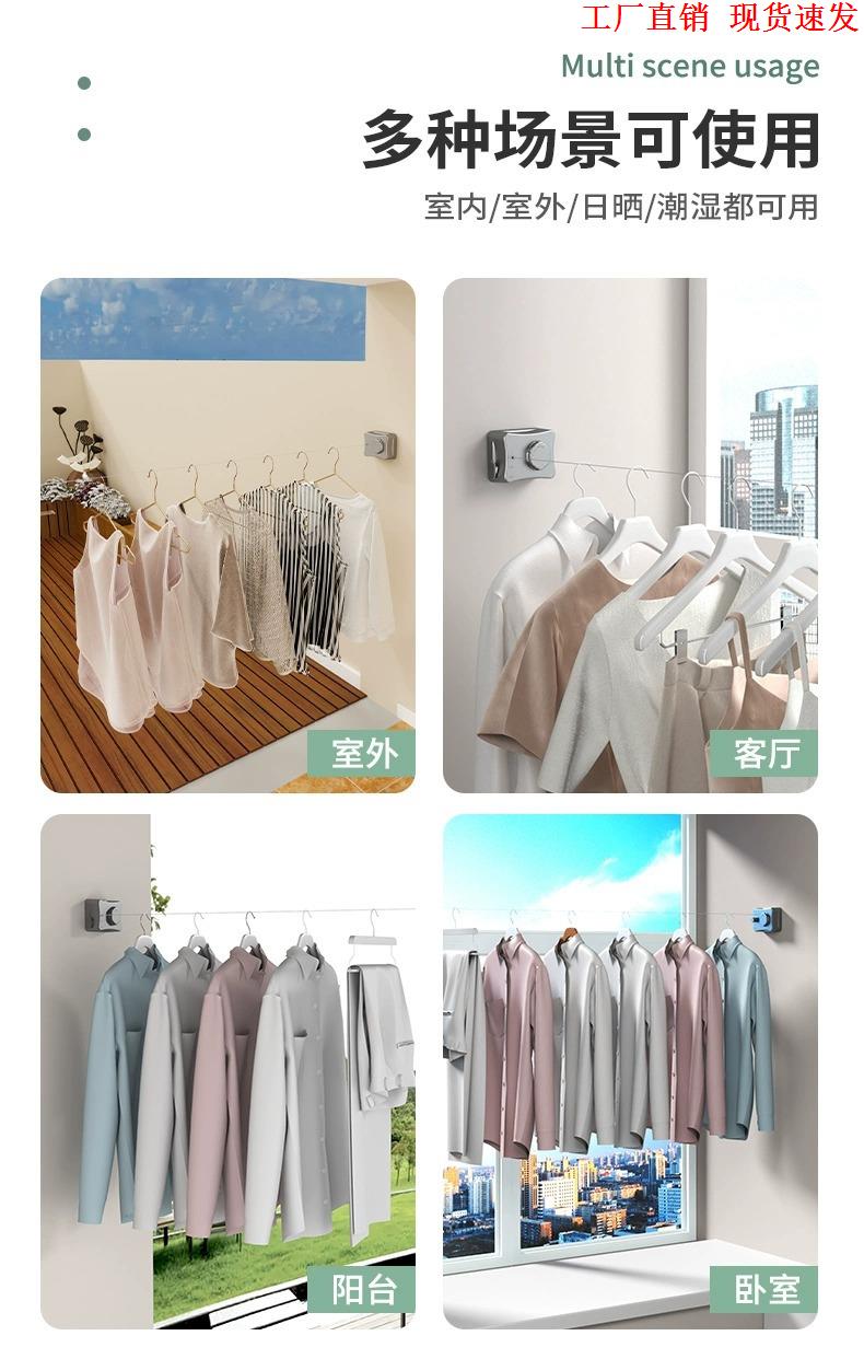 보이지 않는 망원경 옷줄 옷 건조 실내 비 펀치 욕실 망원경 발코니 와이어 로프 홈 건조스토어 가기