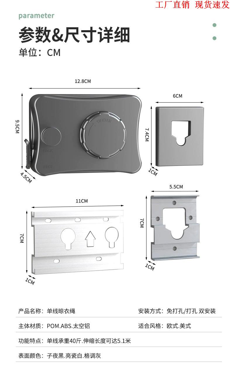 • [우아한 블랙 ABS] + 4.2m 스틸 와이어 로프 [재고 준비 및 몇 초 안에 배송]