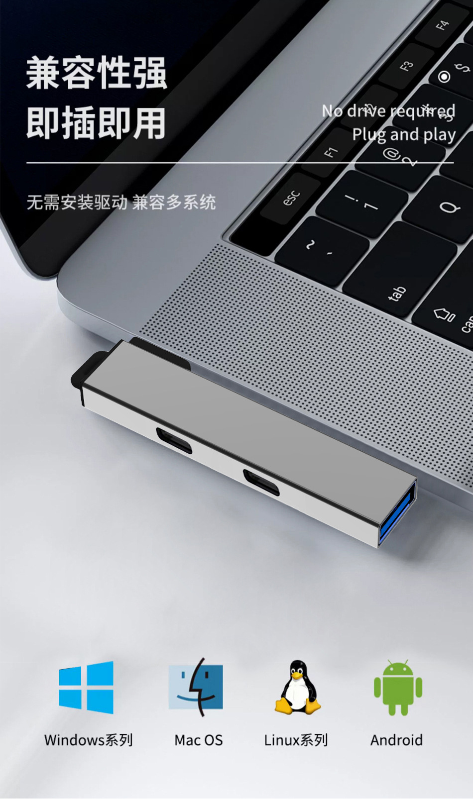 兼容系统 Windows 10/11、macOS 10.12+、Android 9.0+、Linux(需支持USB协议)