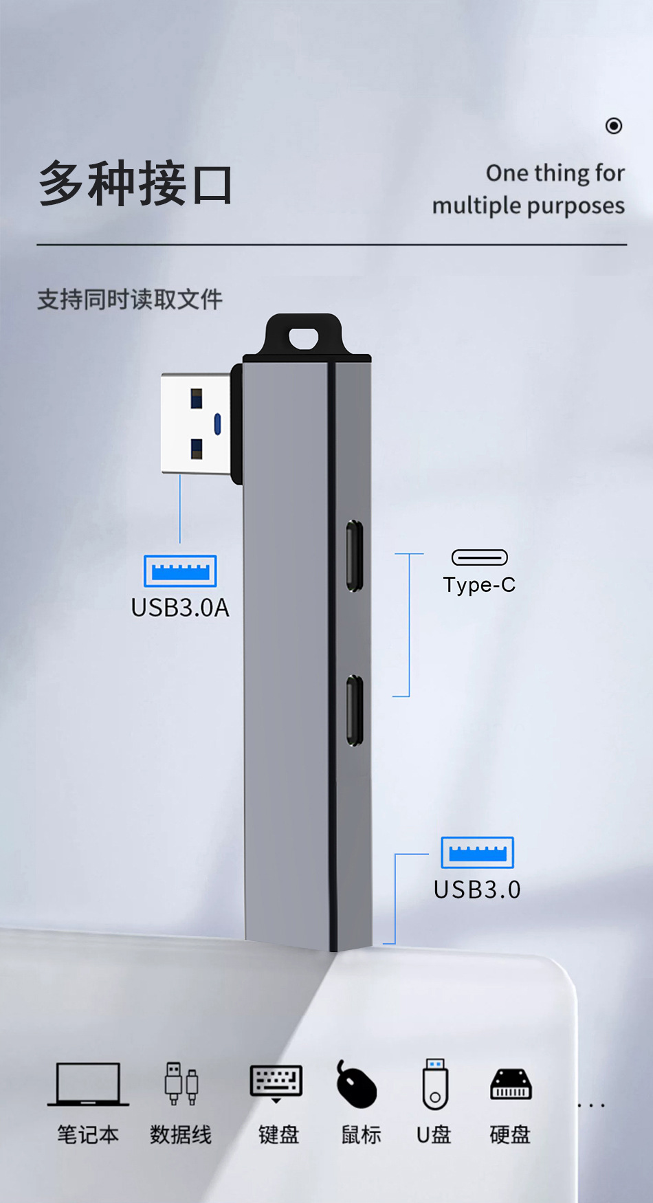 USB3.0接口 理论传输速率5Gbps,适合高速U盘、移动硬盘等)