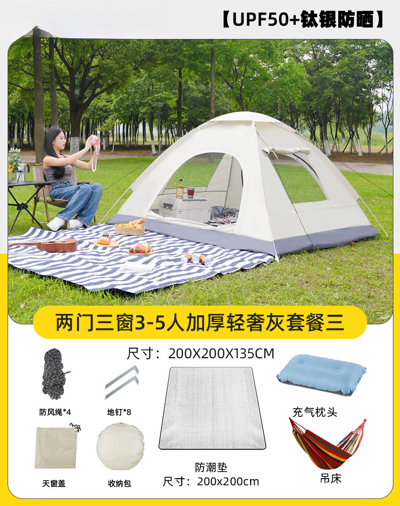 • UPF50+ [티타늄 실버 자외선 차단] [양문형 2~3인 모델] + 패키지 3개