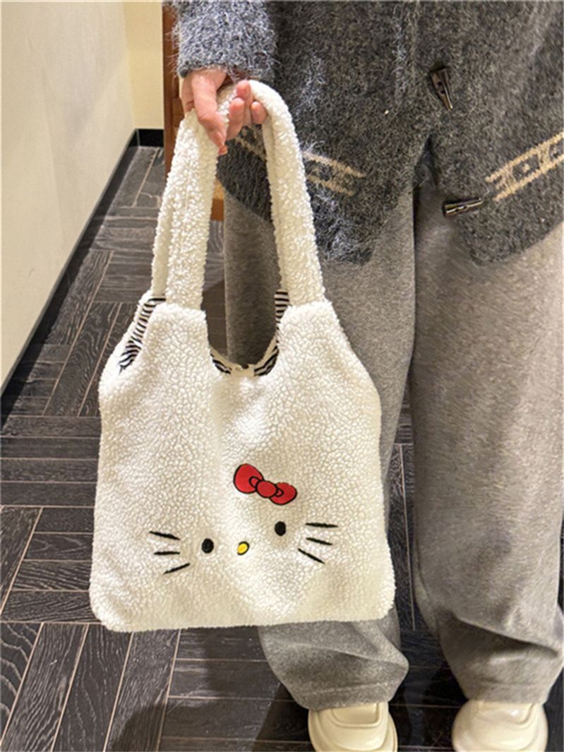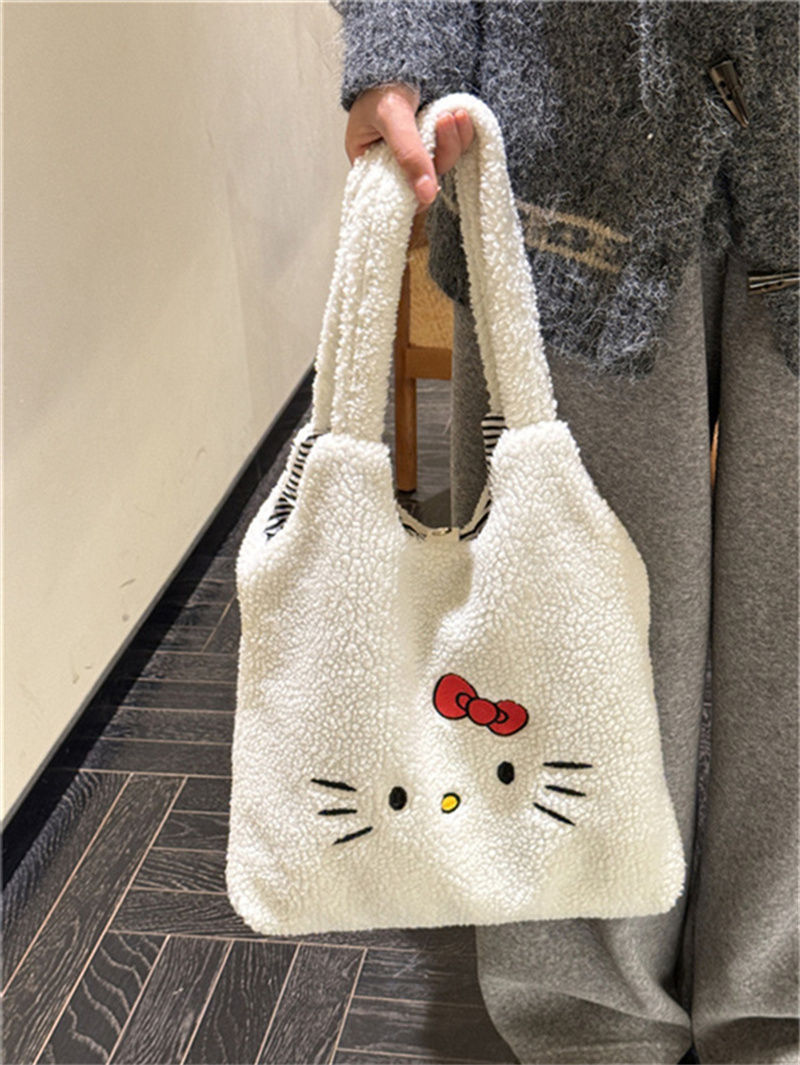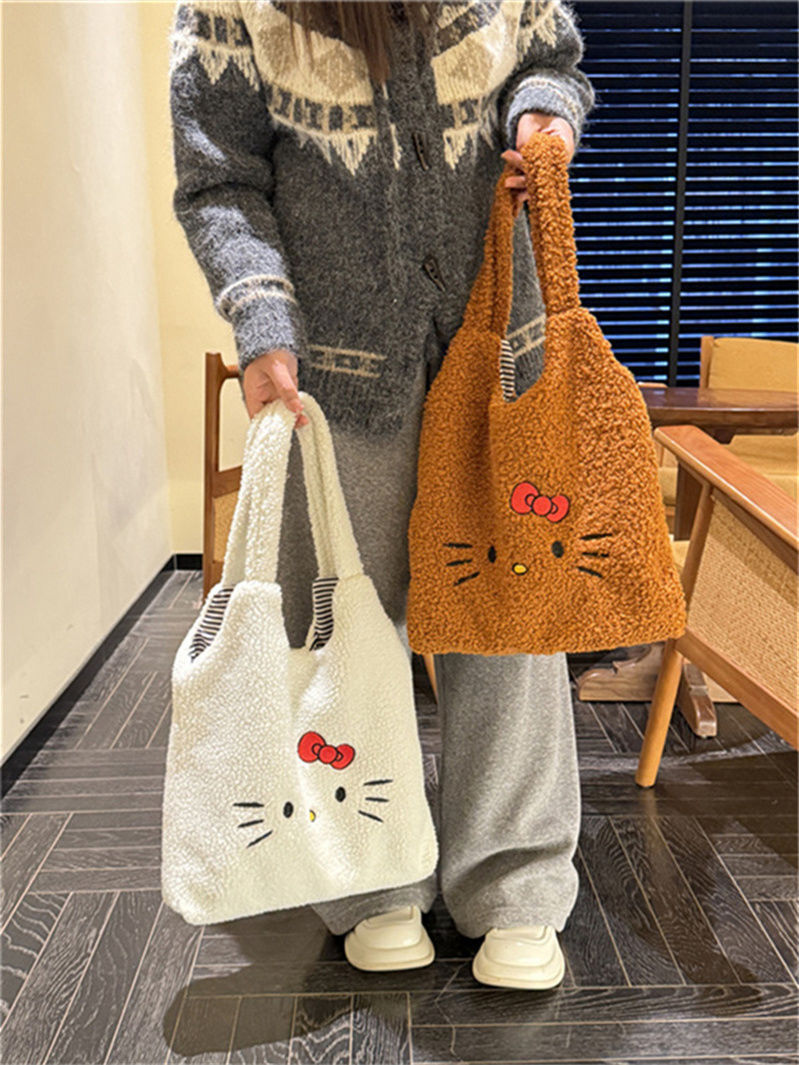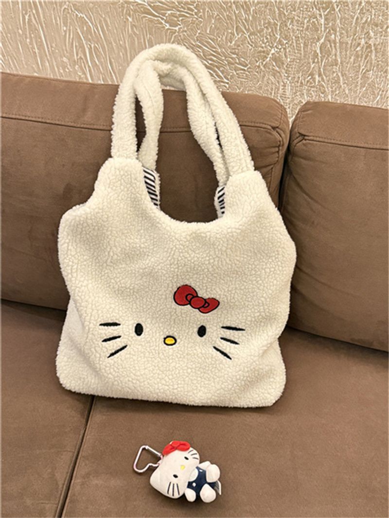 새로운 만화 키티 대용량 마오 마오 숄더 백 여성의 귀여운 봉제 새 토트 통근 가을과 겨울 가방