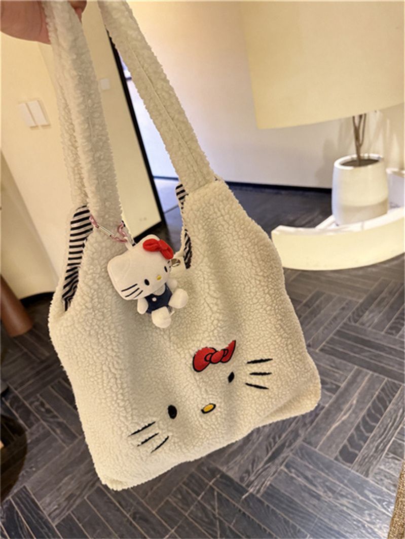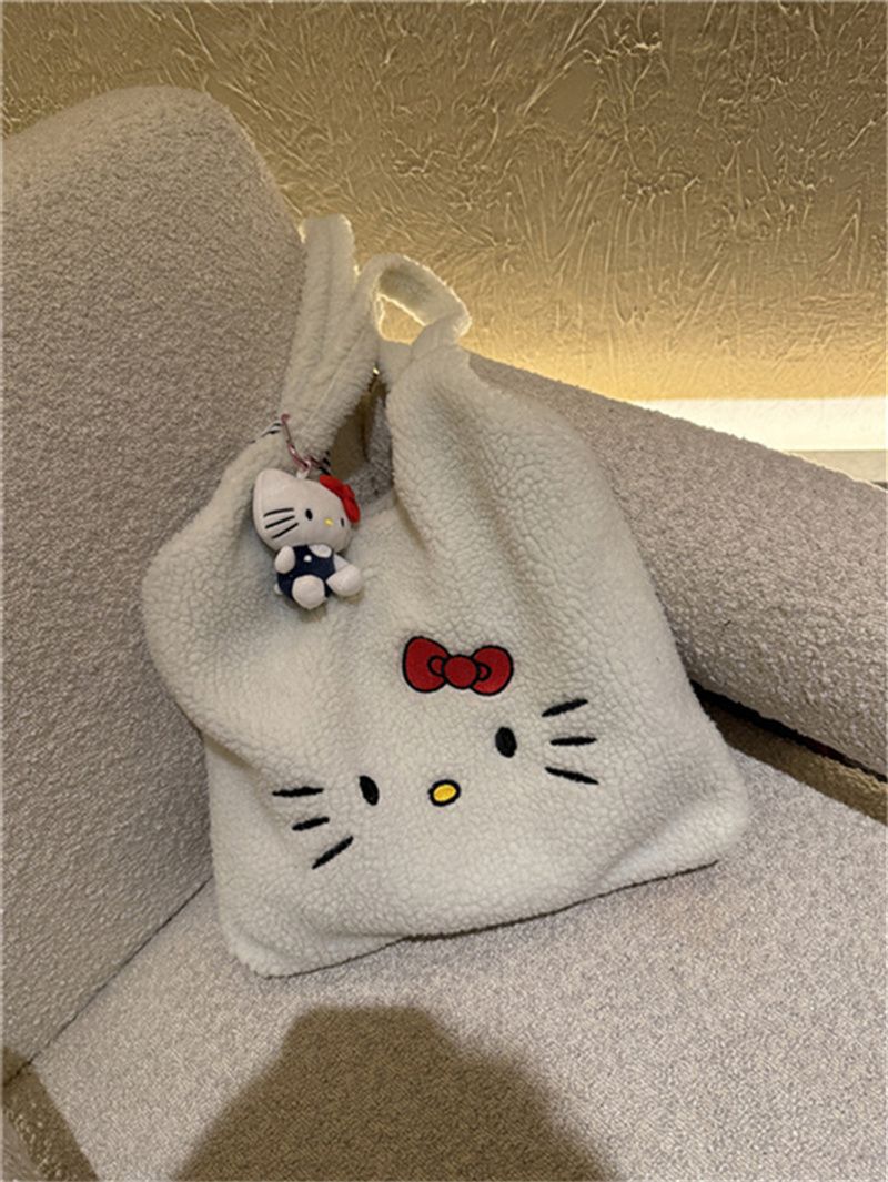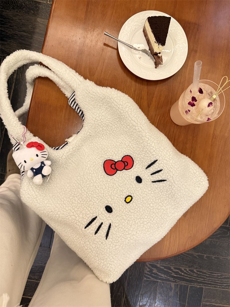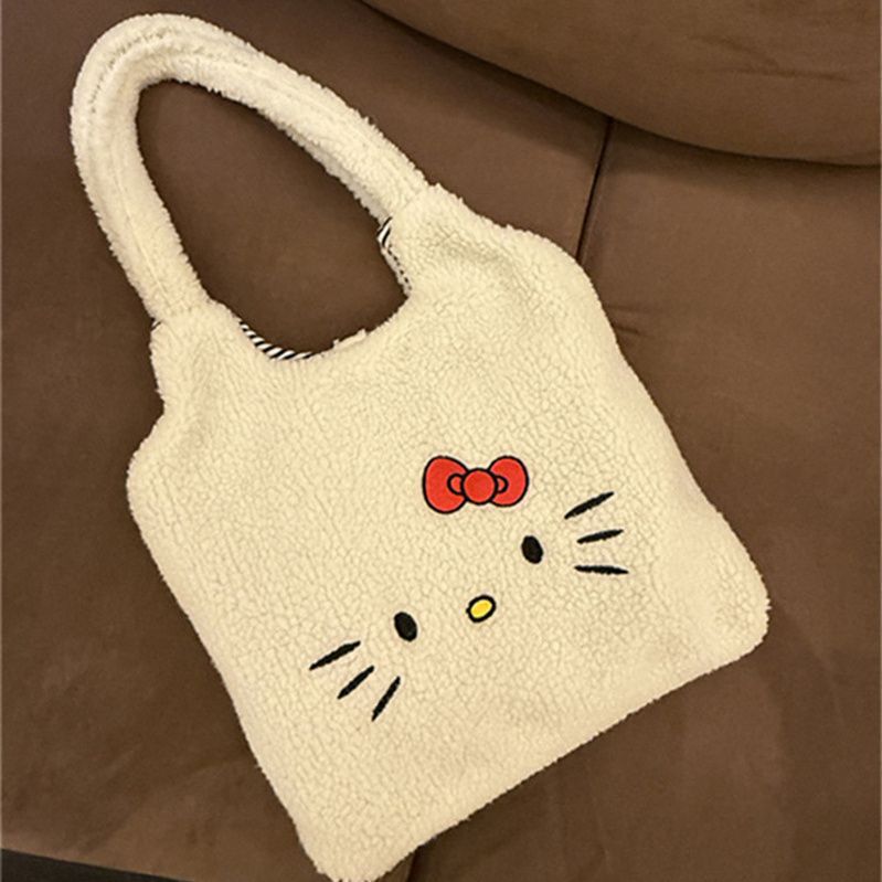 새로운 만화 키티 대용량 마오 마오 숄더 백 여성의 귀여운 봉제 새 토트 통근 가을과 겨울 가방
