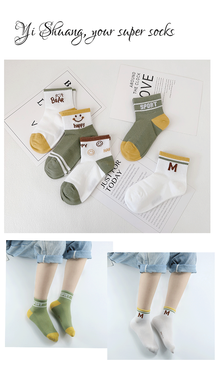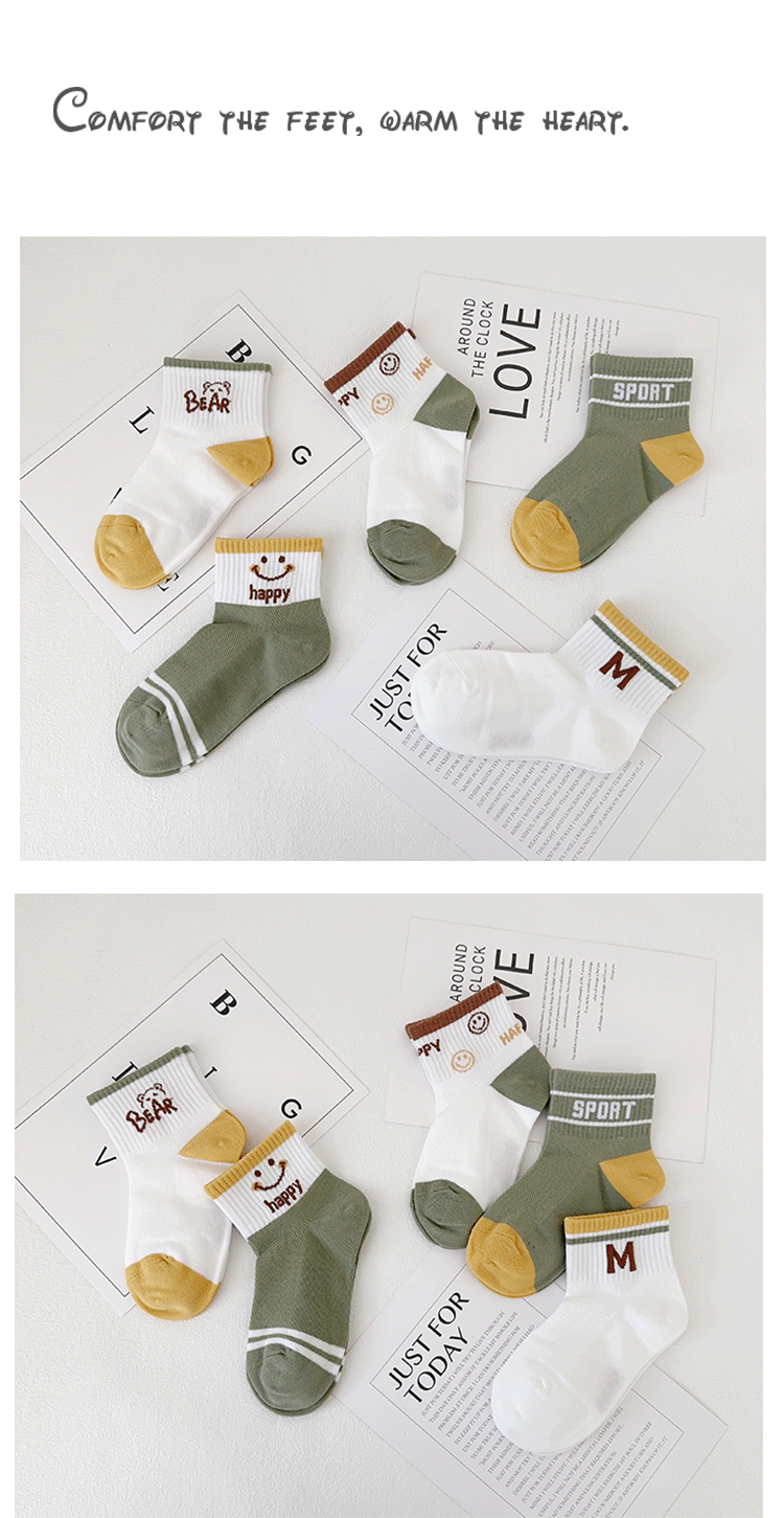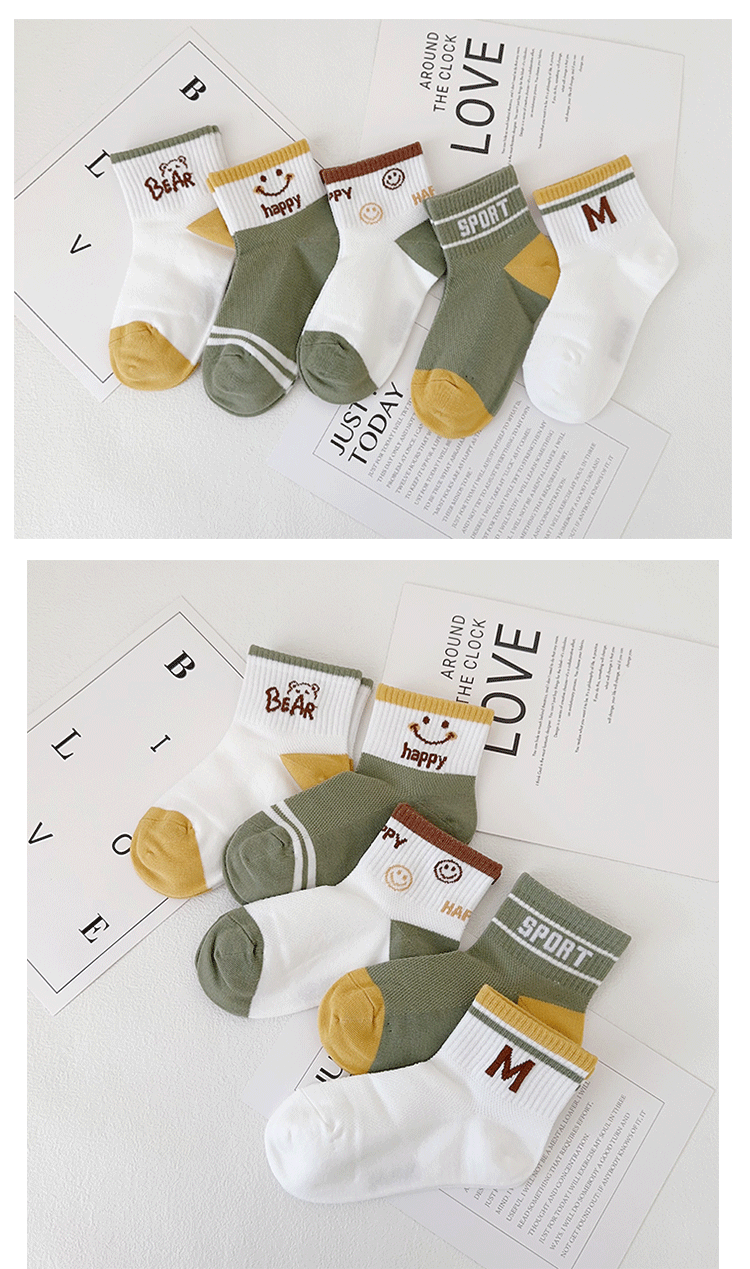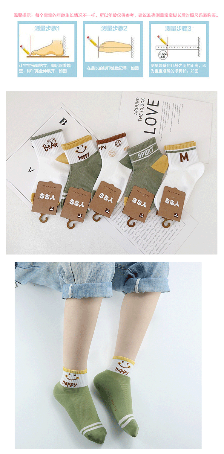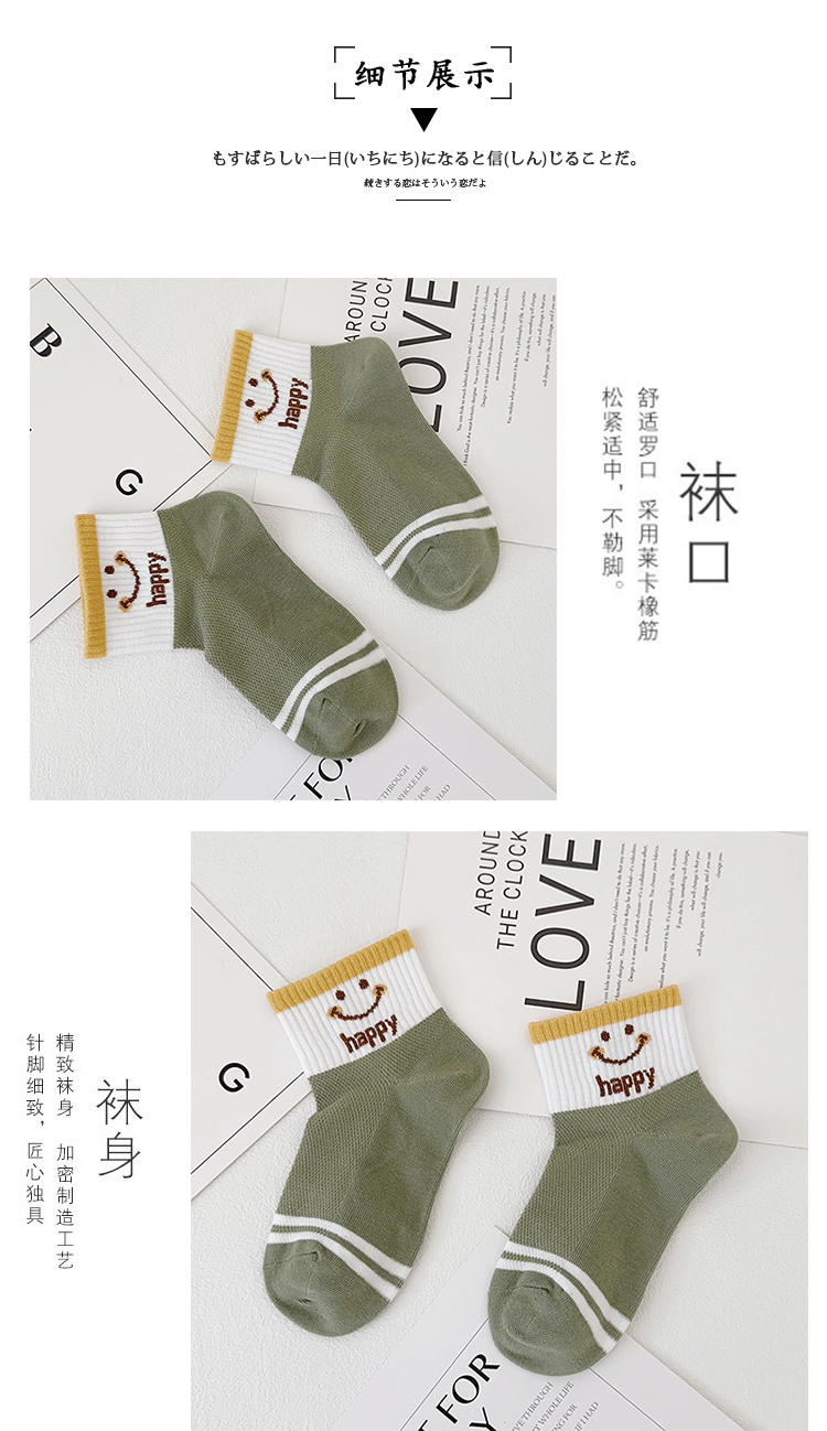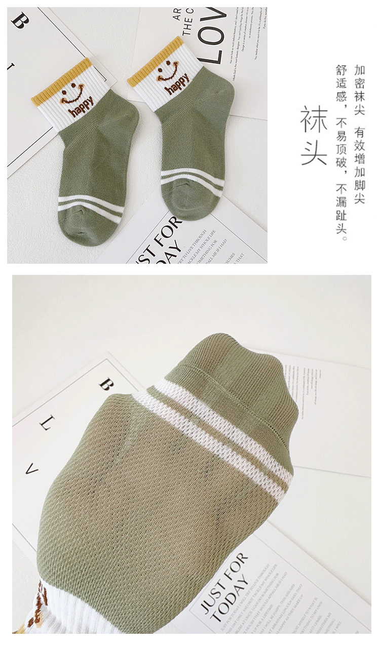 이 쌍 어린이 양말 여름 새로운 메쉬 통기성 만화 스마일리 짧은 양말 코튼 밝은 색상 남성 스포츠 양말스토어 가기