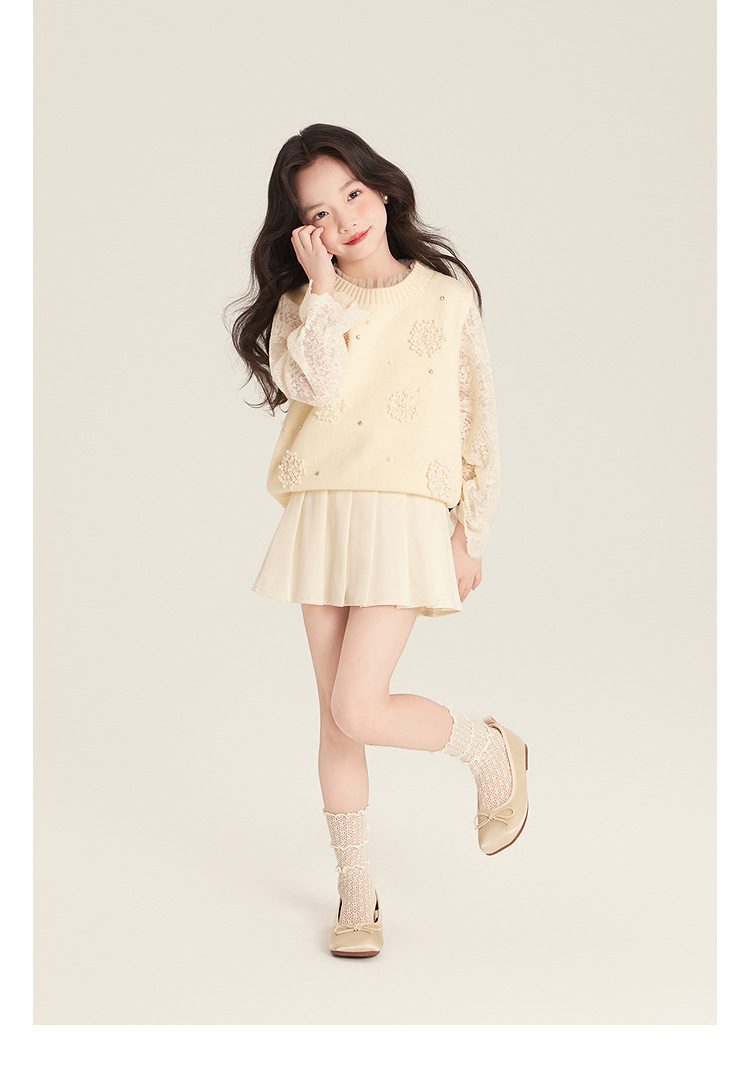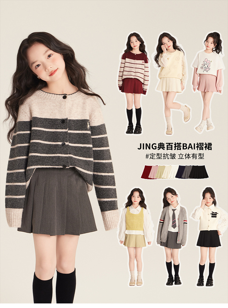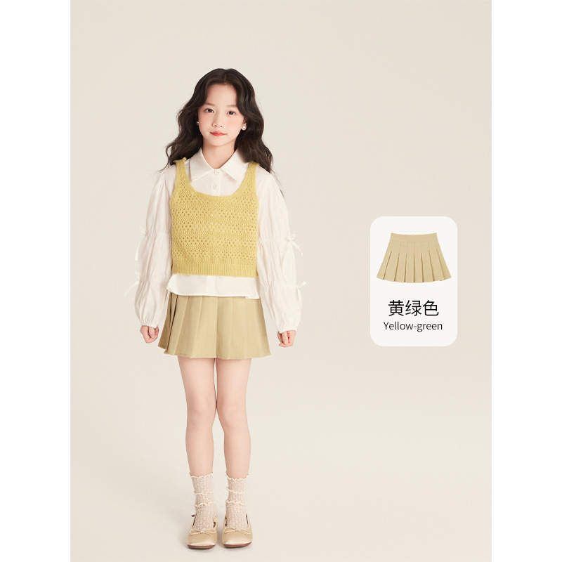 Amybaby 소녀의 치마 봄 2025 새로운 어린이 간단한 캐주얼 올 매치 솔리드 컬러 스커트 주름 치마스토어 가기