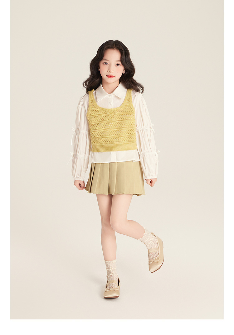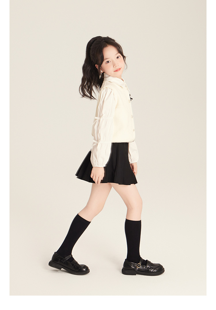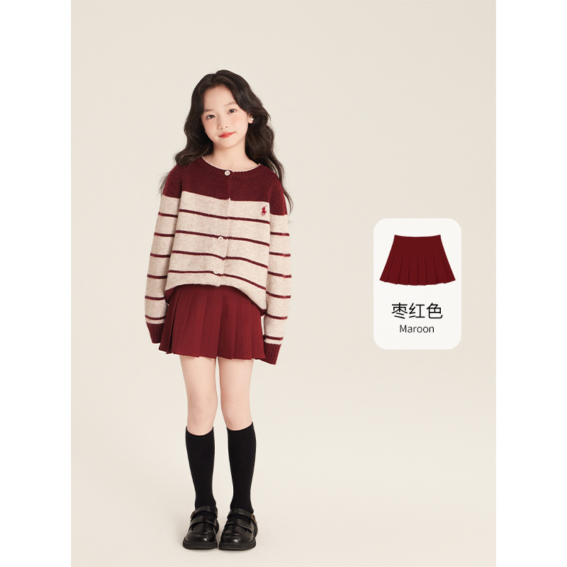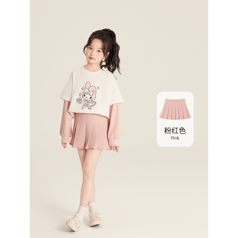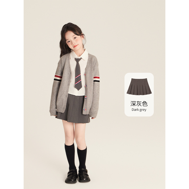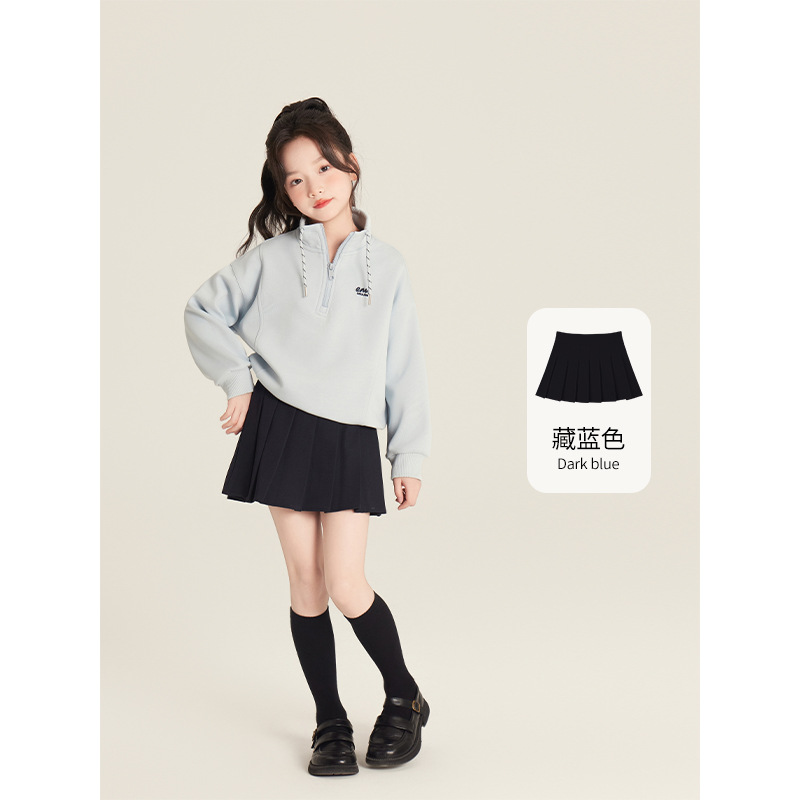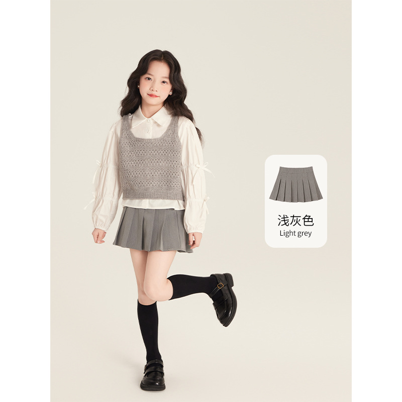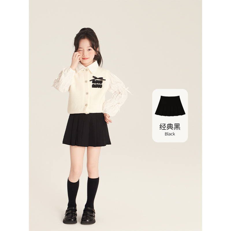 Amybaby 소녀의 치마 봄 2025 새로운 어린이 간단한 캐주얼 올 매치 솔리드 컬러 스커트 주름 치마