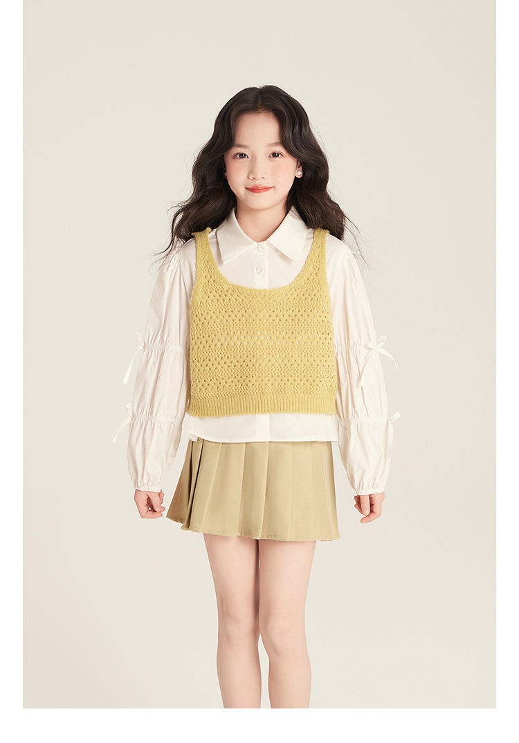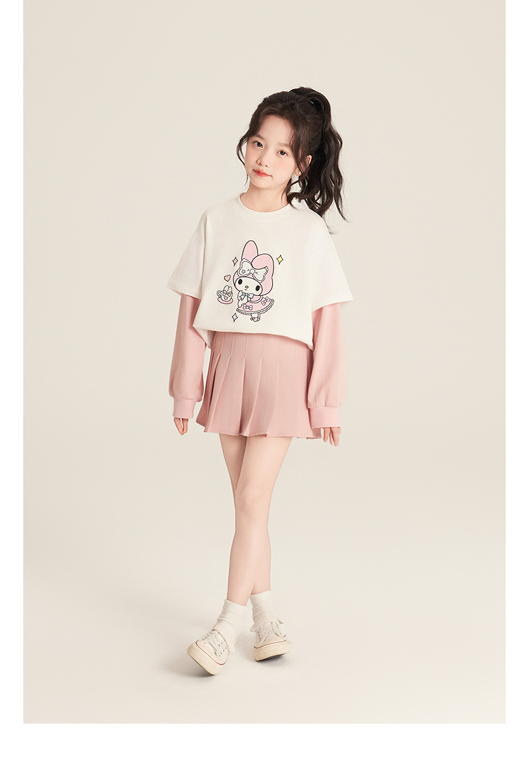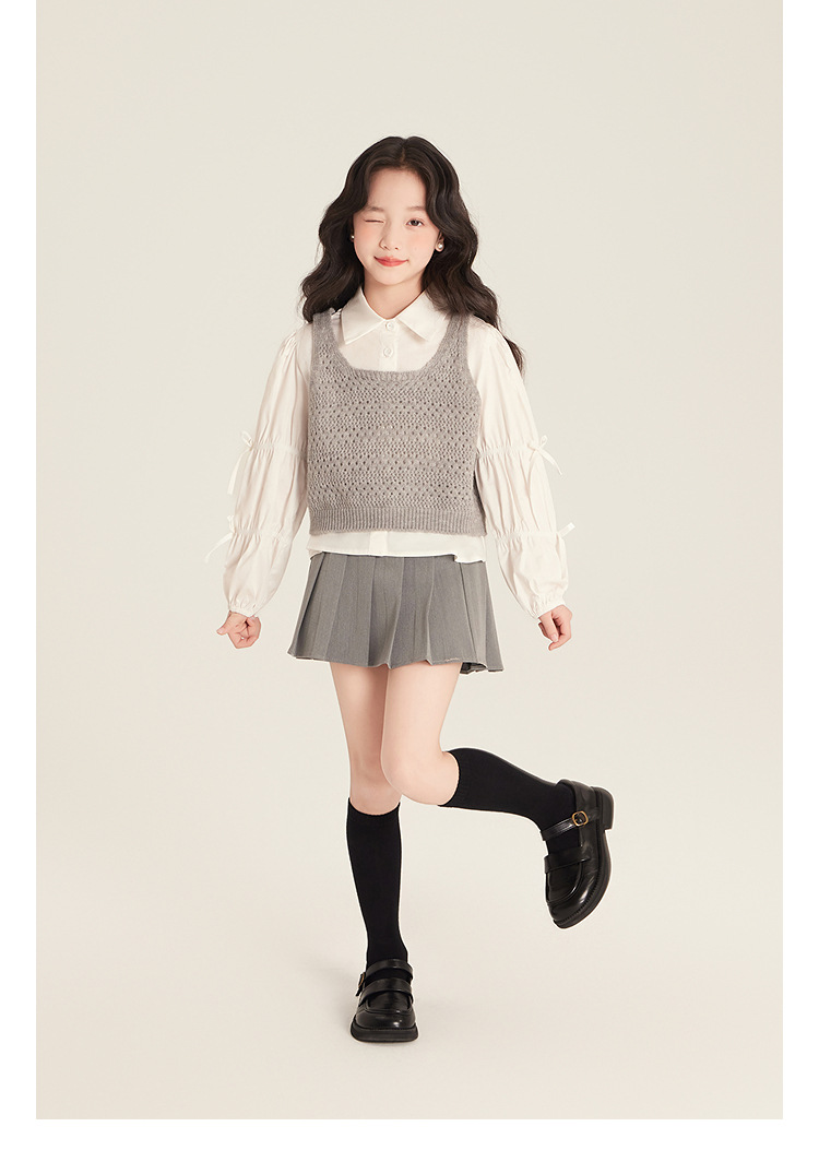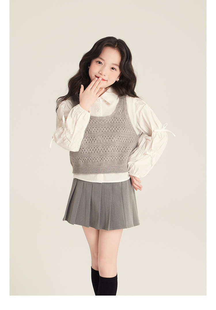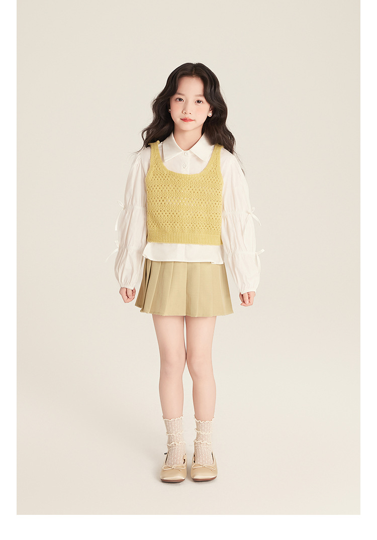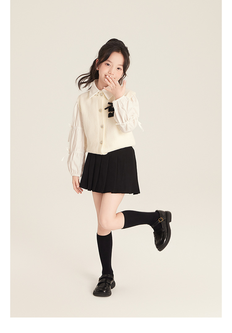 Amybaby 소녀의 치마 봄 2025 새로운 어린이 간단한 캐주얼 올 매치 솔리드 컬러 스커트 주름 치마