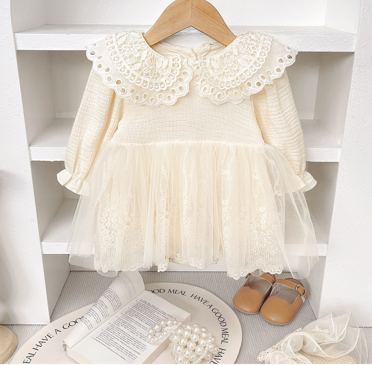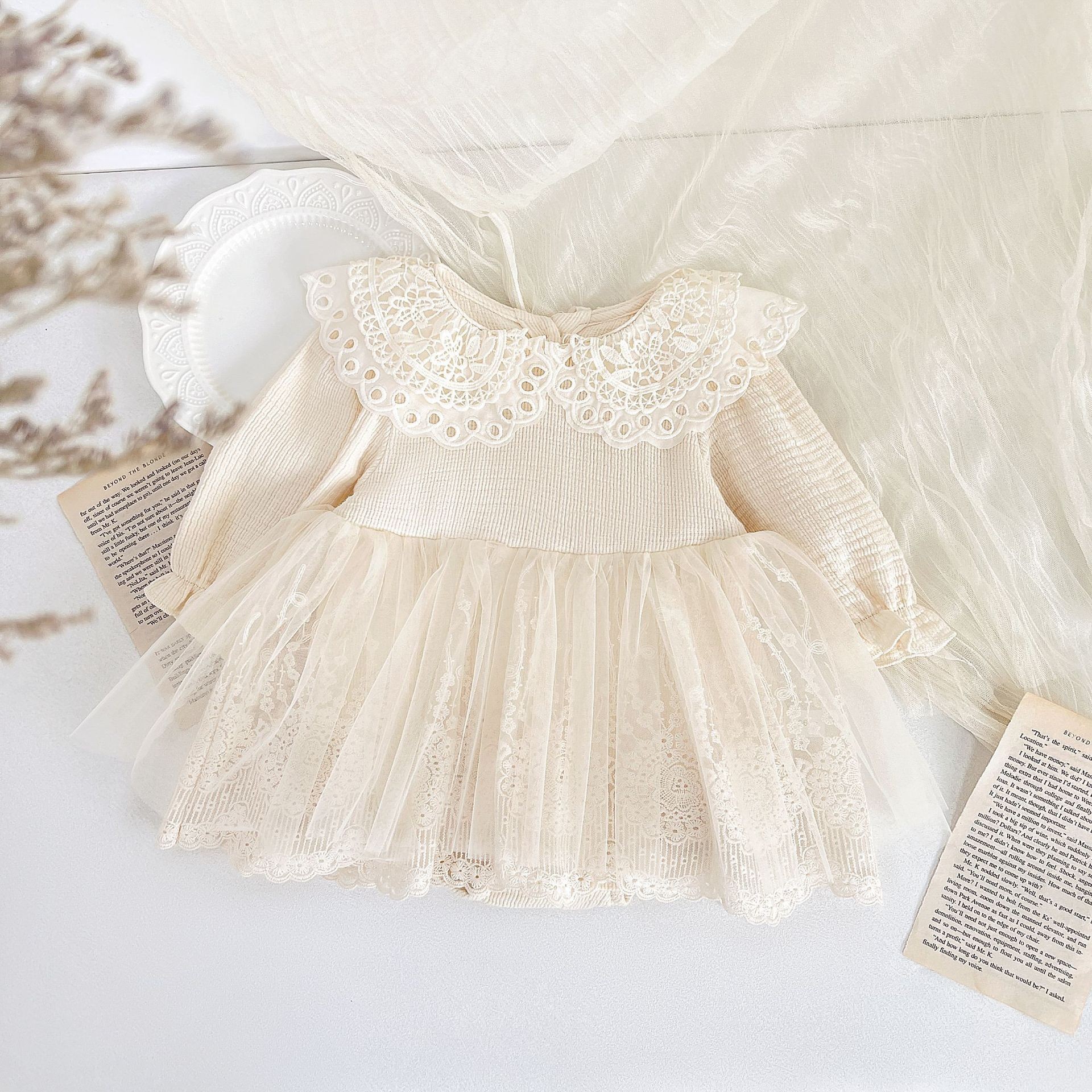 봄 가을 긴 소매 공주 원피스 여성 보물 원피스 폰툰 스커트 신생아 화이트 레이스 베일 아기 헤어 원피스스토어 가기