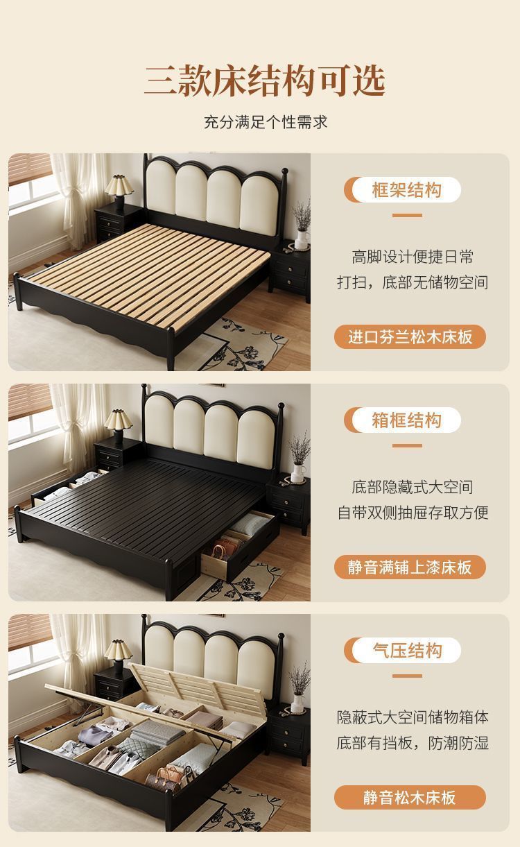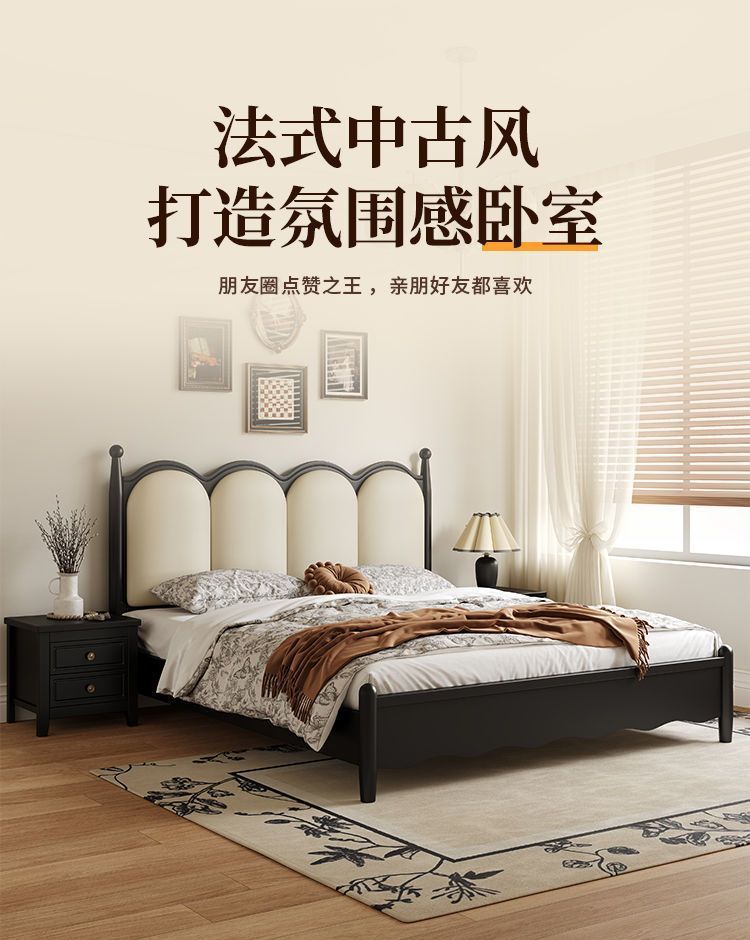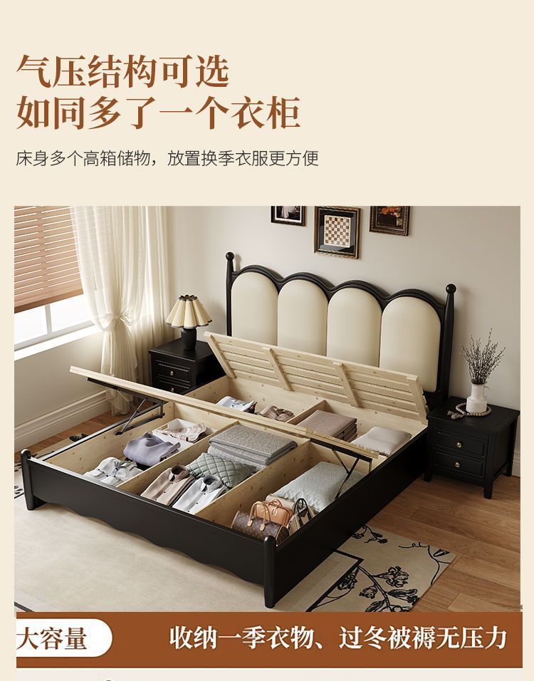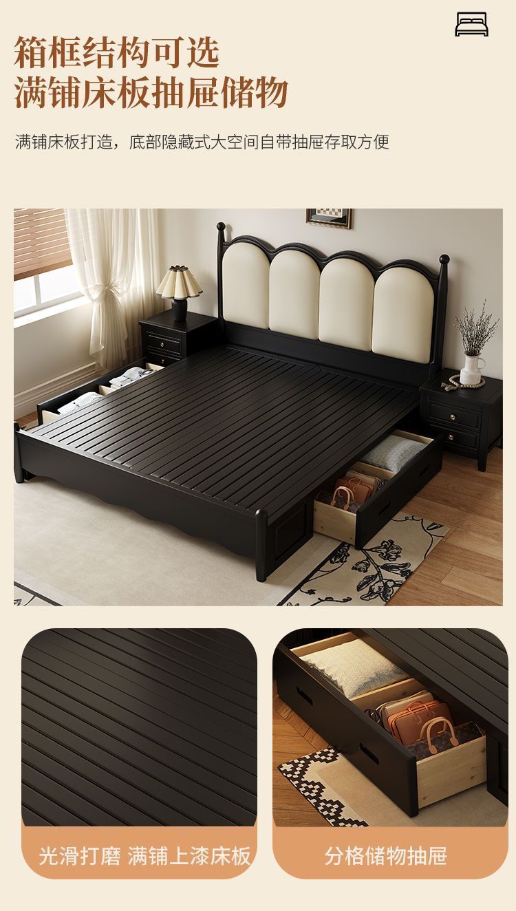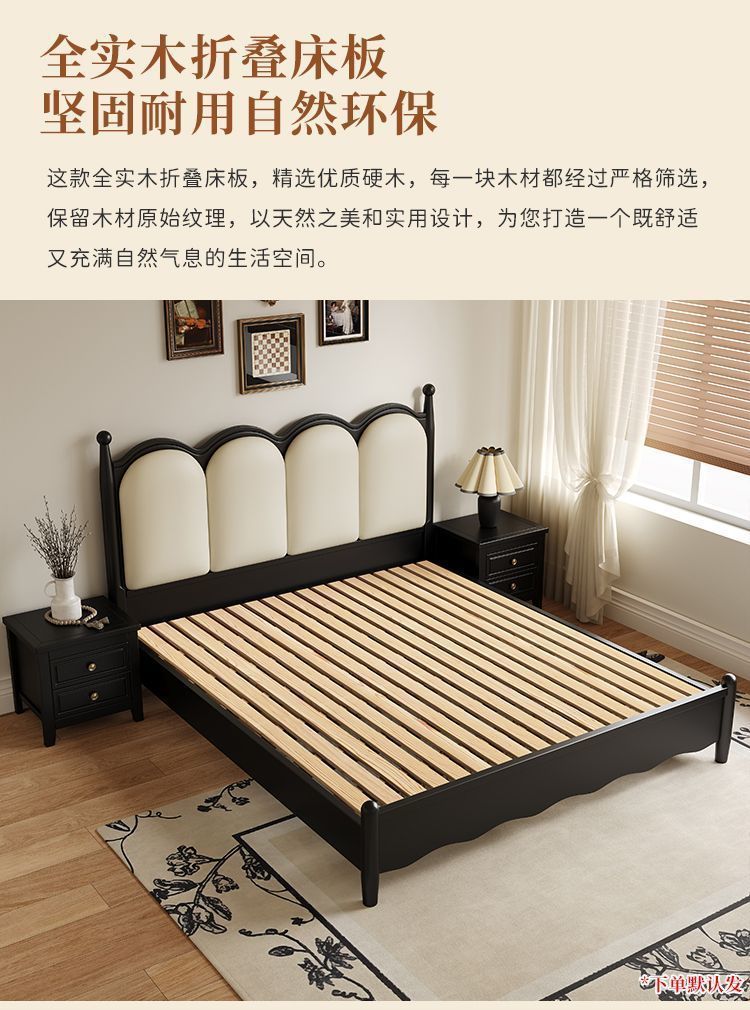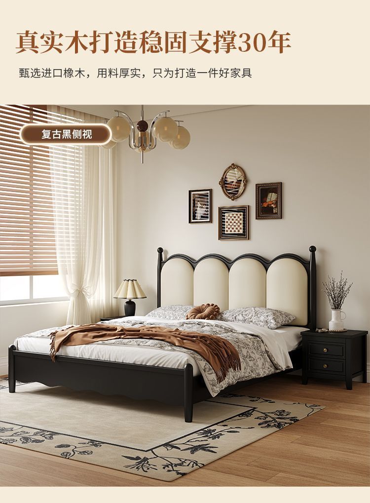 프랑스 간단한 현대 단단한 나무 침대 1.5 m 블랙 마스터 침실 더블 1.8 m 골동품 빛 고급 소나무 침대스토어 가기