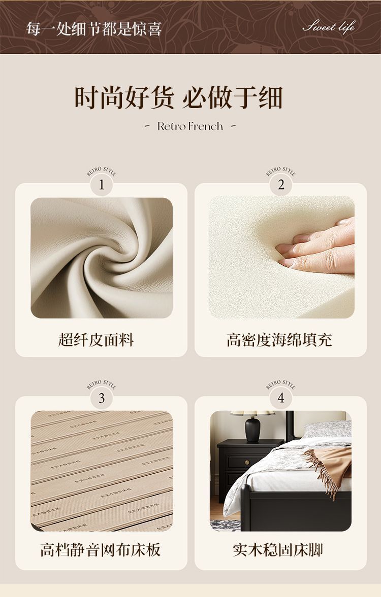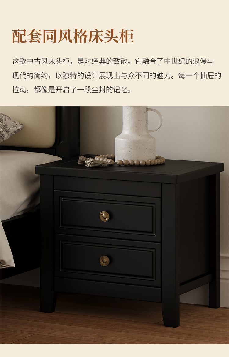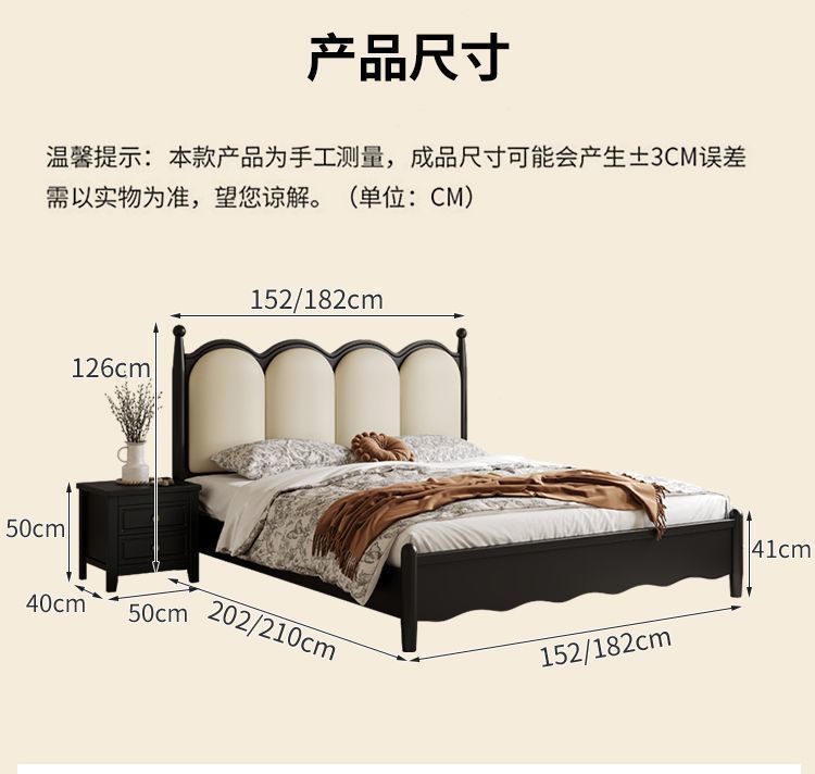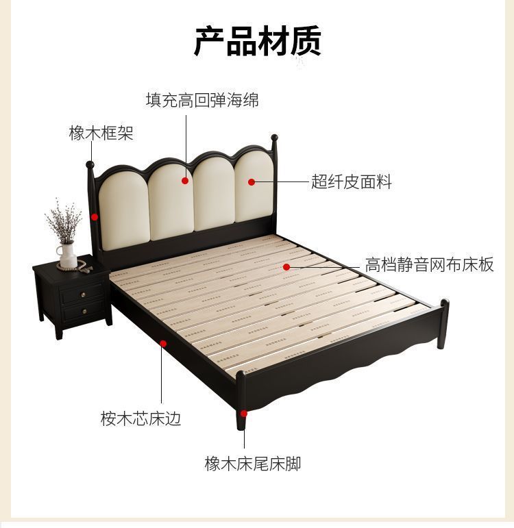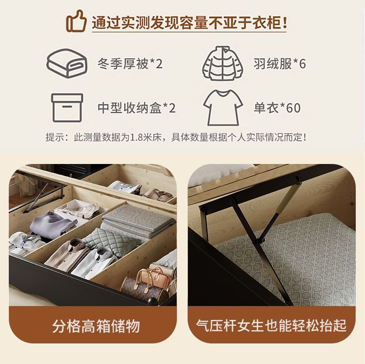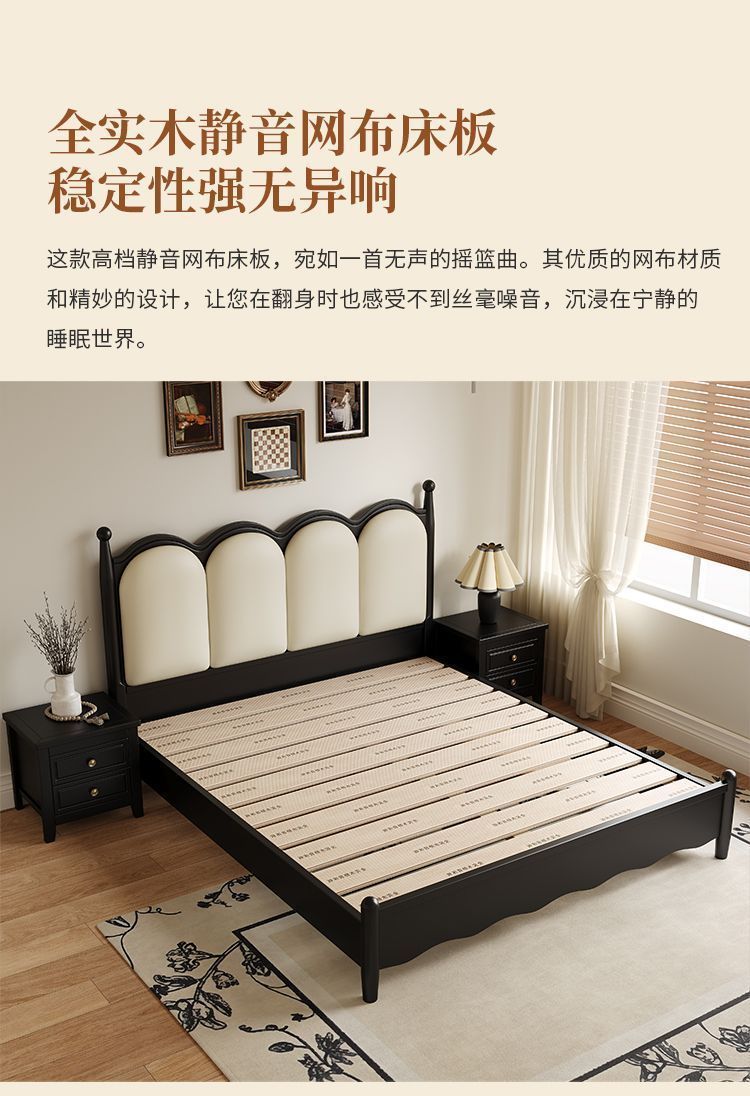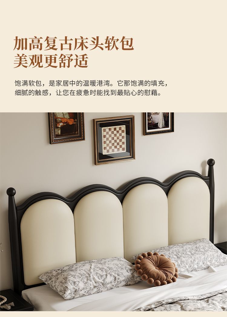 프랑스 간단한 현대 단단한 나무 침대 1.5 m 블랙 마스터 침실 더블 1.8 m 골동품 빛 고급 소나무 침대스토어 가기