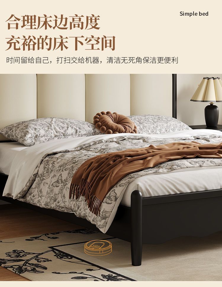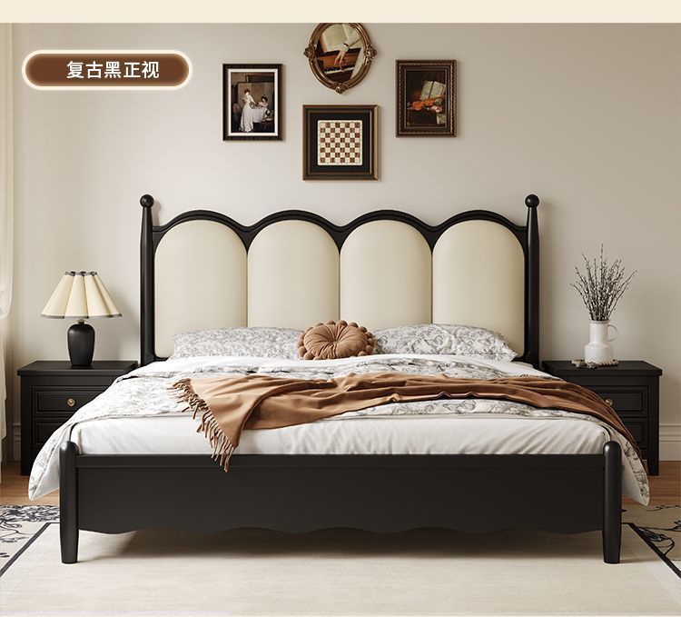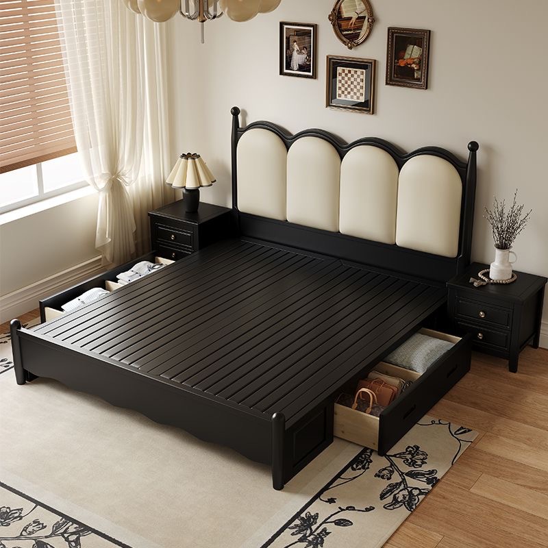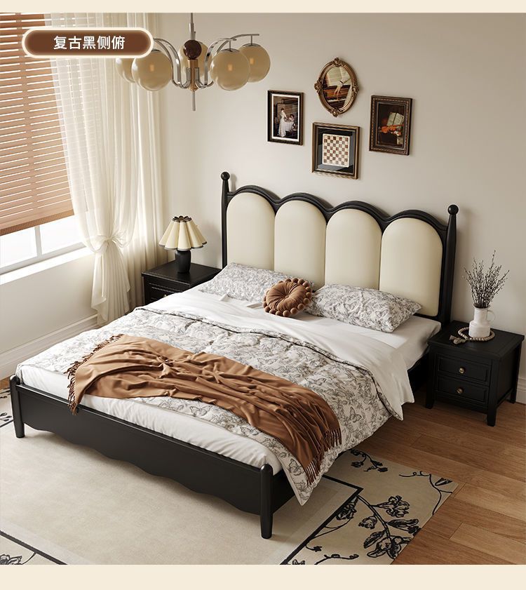 프랑스 간단한 현대 단단한 나무 침대 1.5 m 블랙 마스터 침실 더블 1.8 m 골동품 빛 고급 소나무 침대