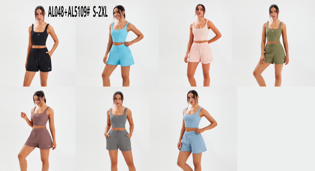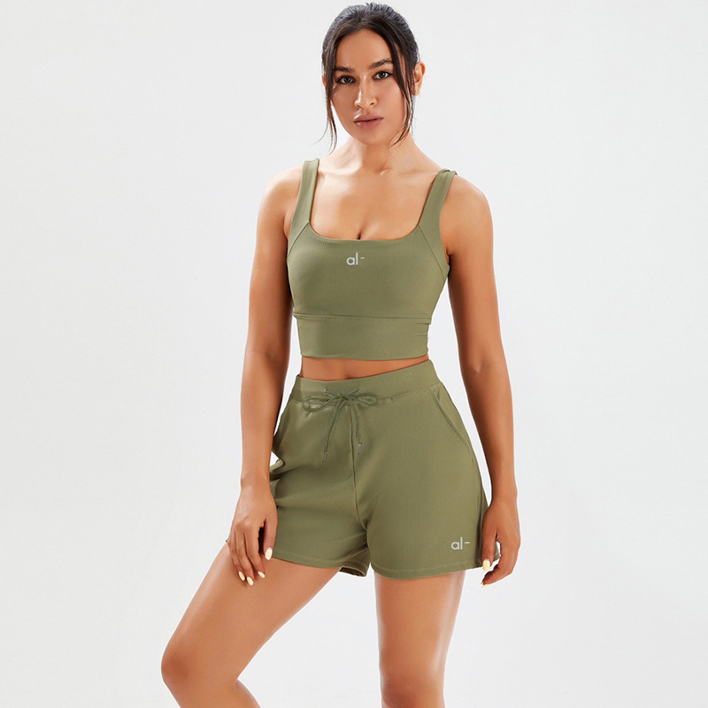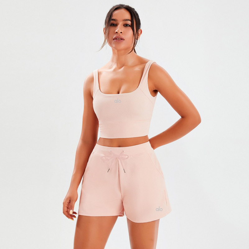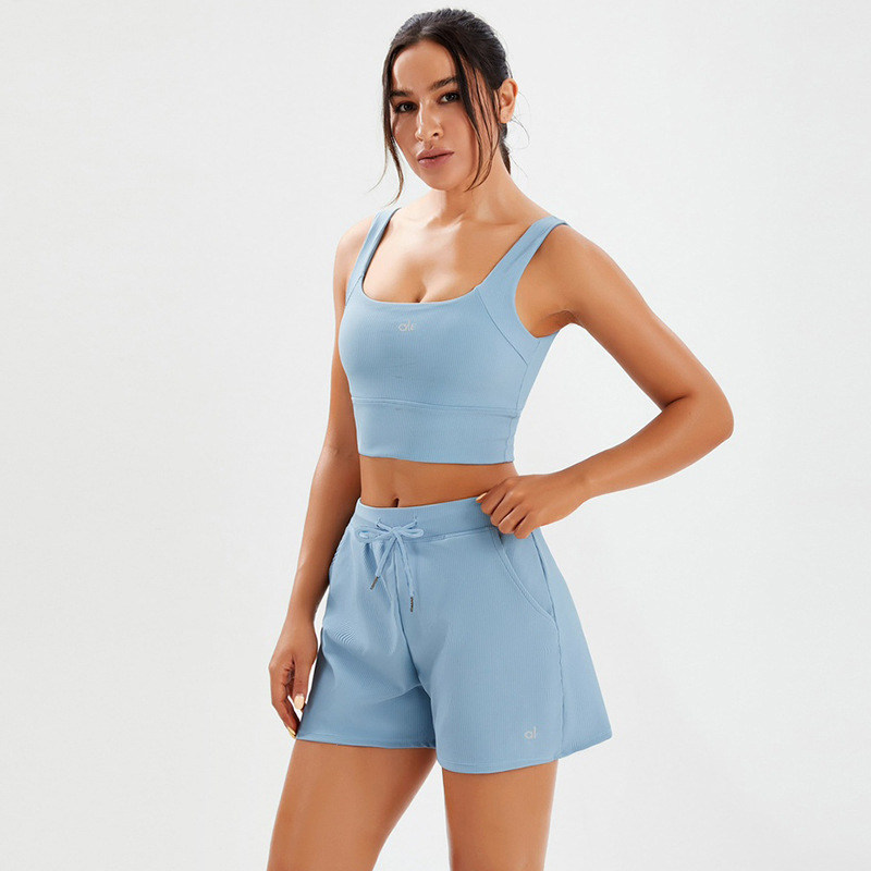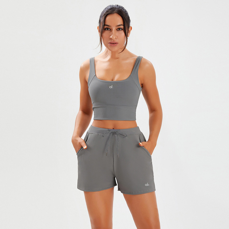 국경 요가 세트 필라테스 요가 스포츠 조끼 속건성 포켓 루즈한 스레드 짧은 3점 요가 바지스토어 가기