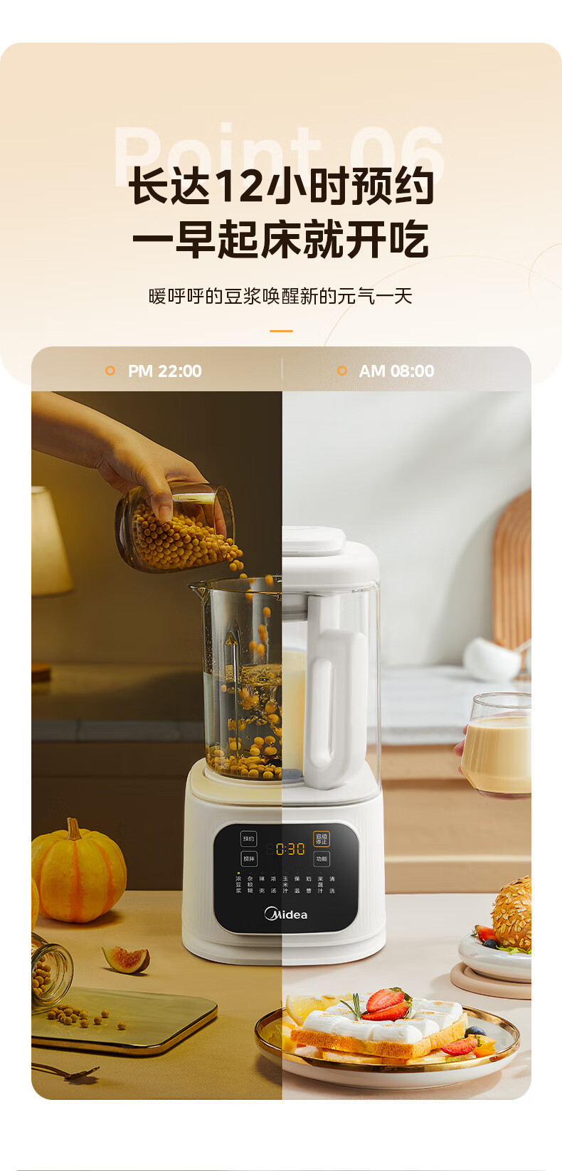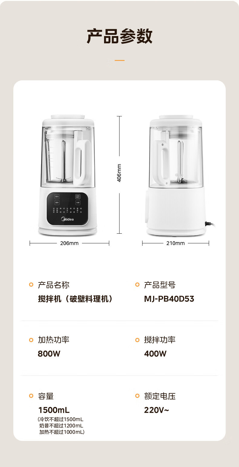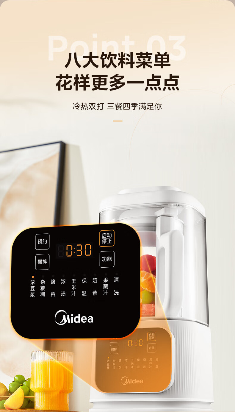 Midea MJ-PB40D53 벽 속보 기계 가정용 빛과 섬세한 휘핑 소음 감소 주스 짜기 콩 우유 기계 보조 식품 조리 기계스토어 가기