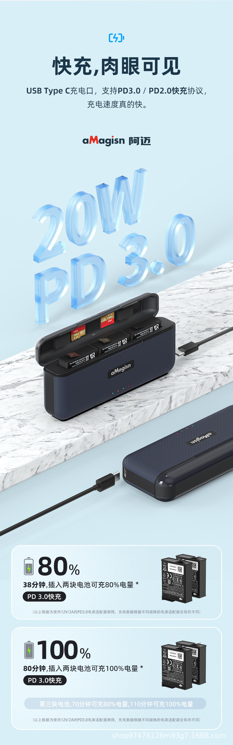 AMagis Amai DJI Action4 고속 충전 박스 Action3 충전기 스포츠 카메라 액세서리스토어 가기