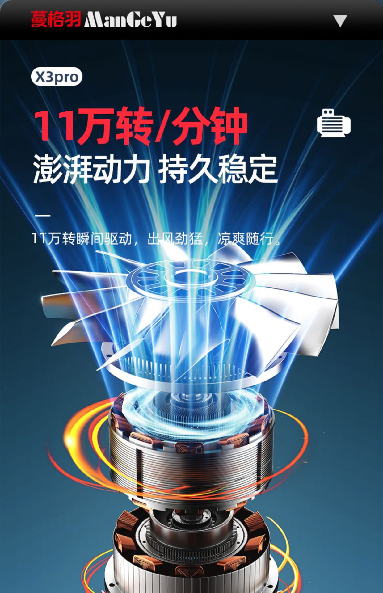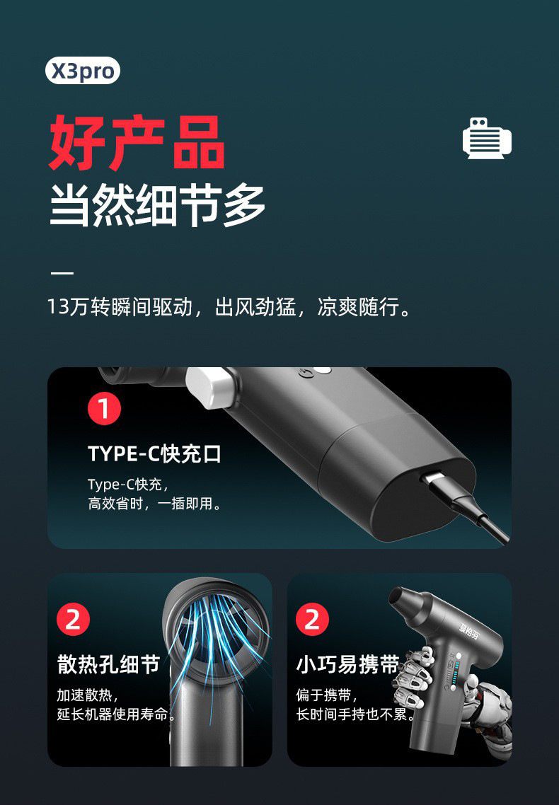 • 110k회전 폭력적인 터보팬 [메탈릭 블랙] 흡입과 송풍을 하나로