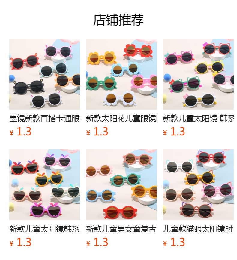 아이 선글라스 도매 귀여운 활 만화 유치한 선글라스 차양 소녀 멀티 컬러 재고스토어 가기