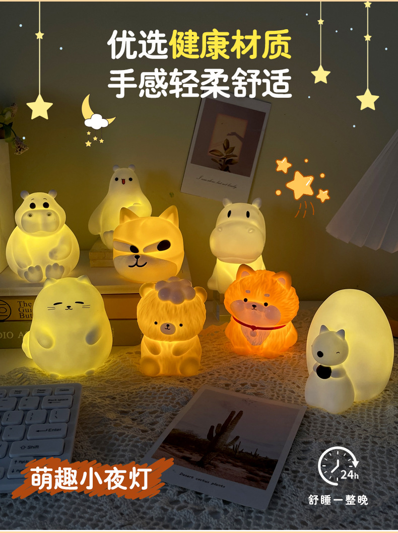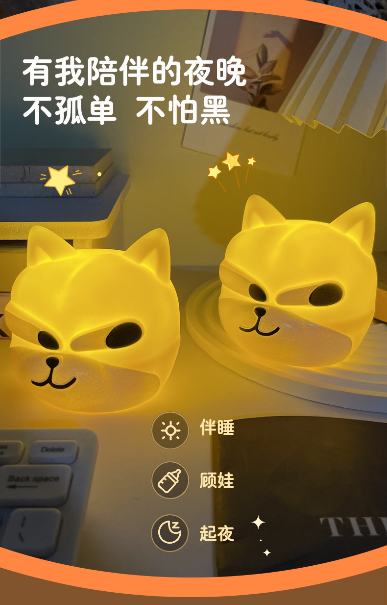 인터넷 축하 귀여운 만화 개 머리 표현 눈 보호 소프트 라이트 침대 옆 램프 가구 장식 밤 빛 따뜻한 빛 분위기 빛스토어 가기
