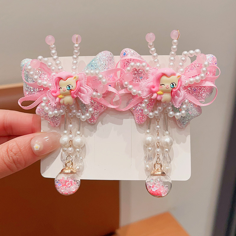 어린이 헤어 액세서리 활 머리핀 한후 리본 머리핀 여아 헤어 액세서리 새로운 봄과 여름 귀여운 술 머리 장식스토어 가기