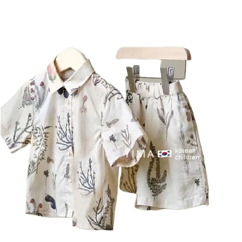 여름 소년 소녀 형제 자매 아기 서양식 어린이 개성 패션 플라워 엘 칼라 셔츠 반바지 원피스