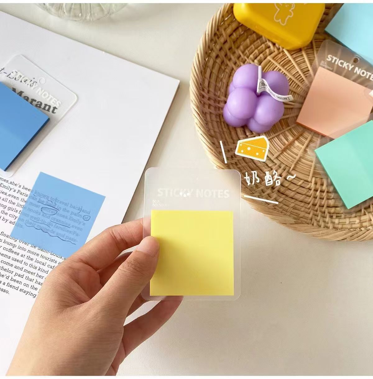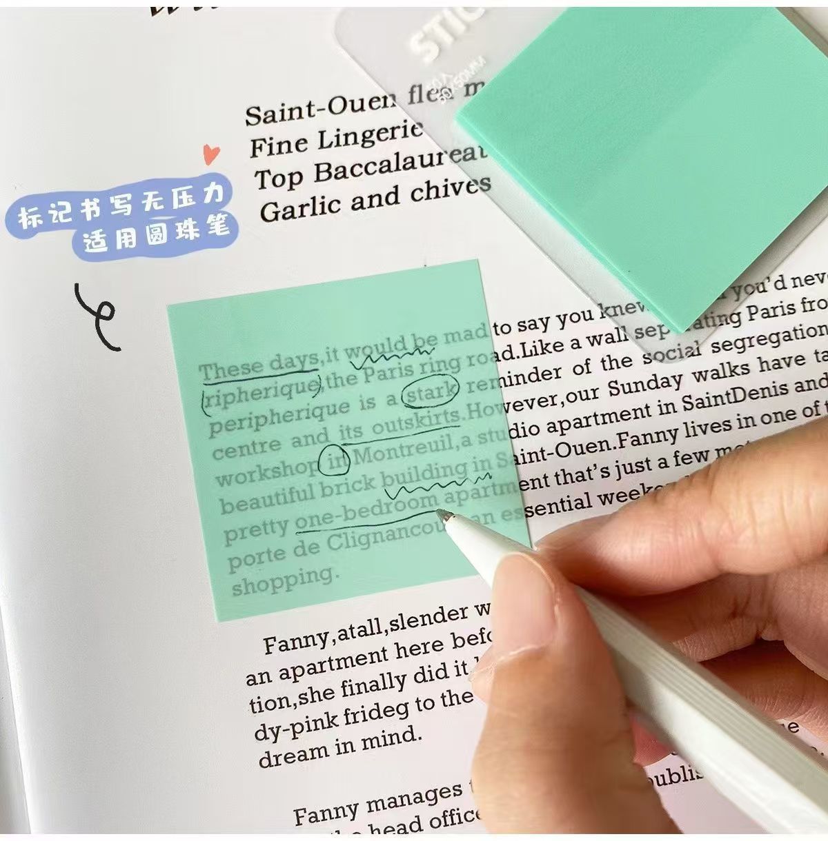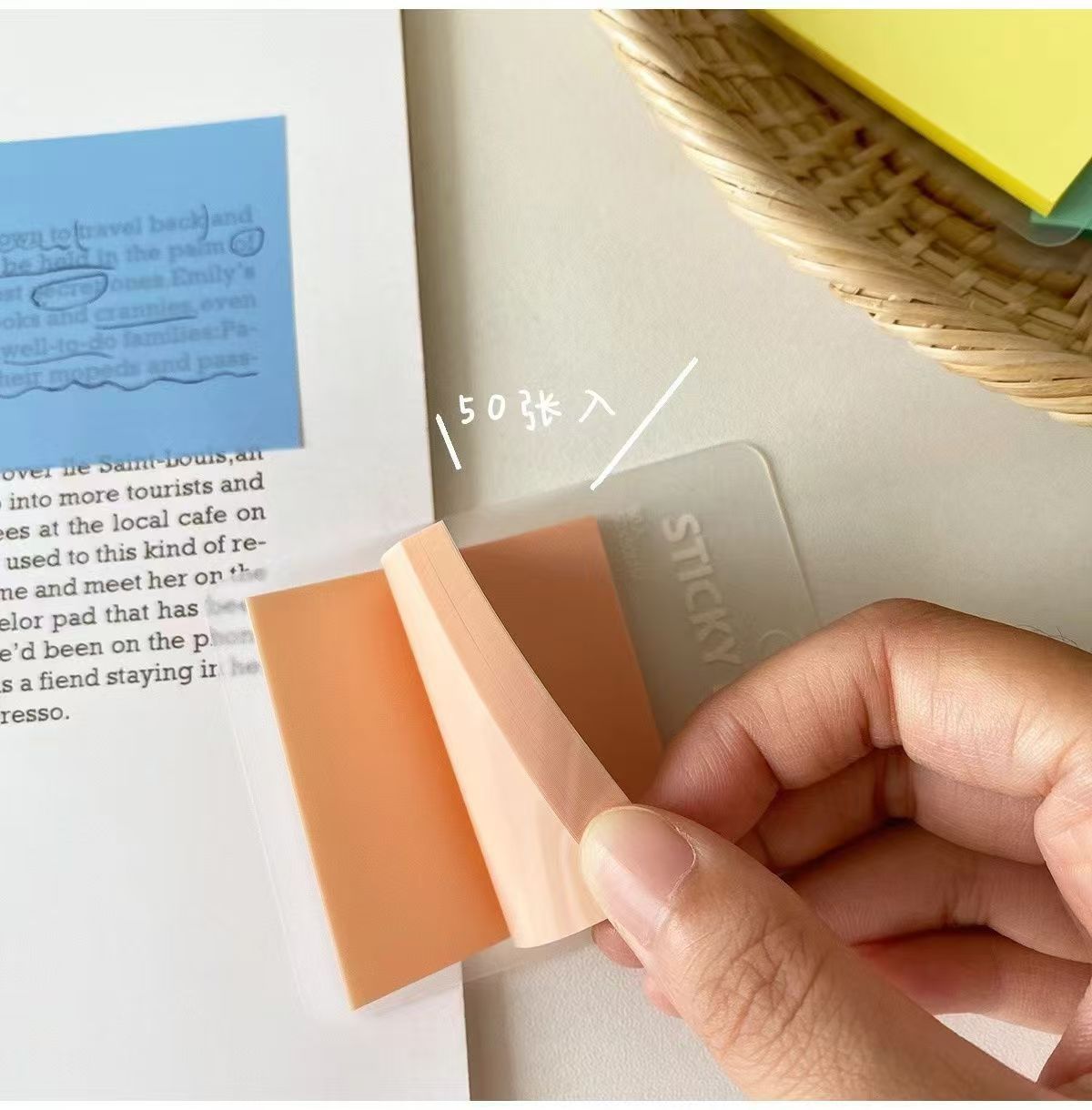 컬러 포스트잇, PET 투명 모란디 색상 정사각형, 반복 사용 가능한 포스트잇, 중요 포인트 표시용 작은 메모지