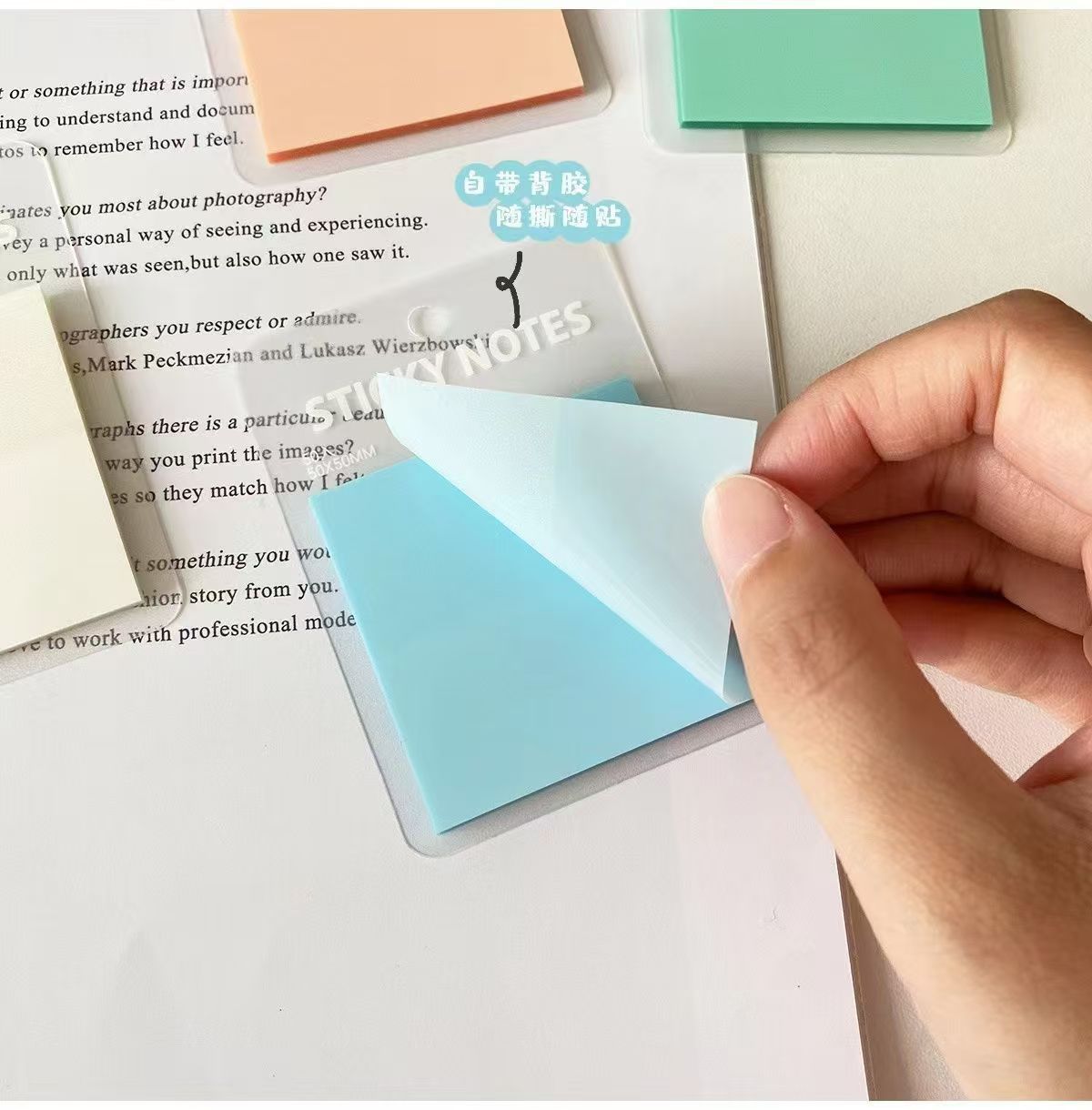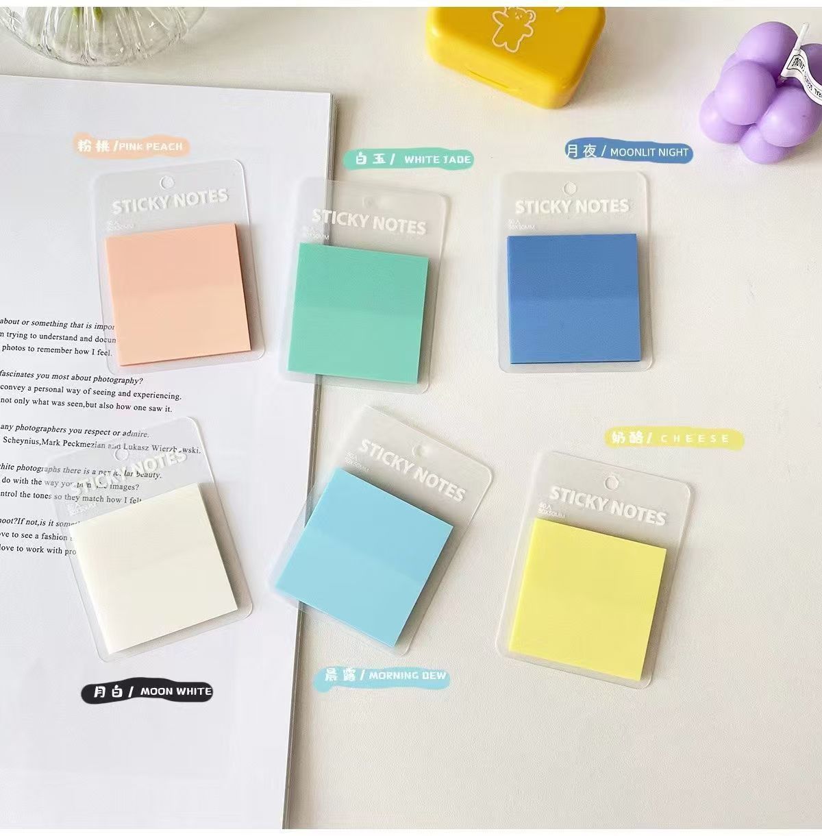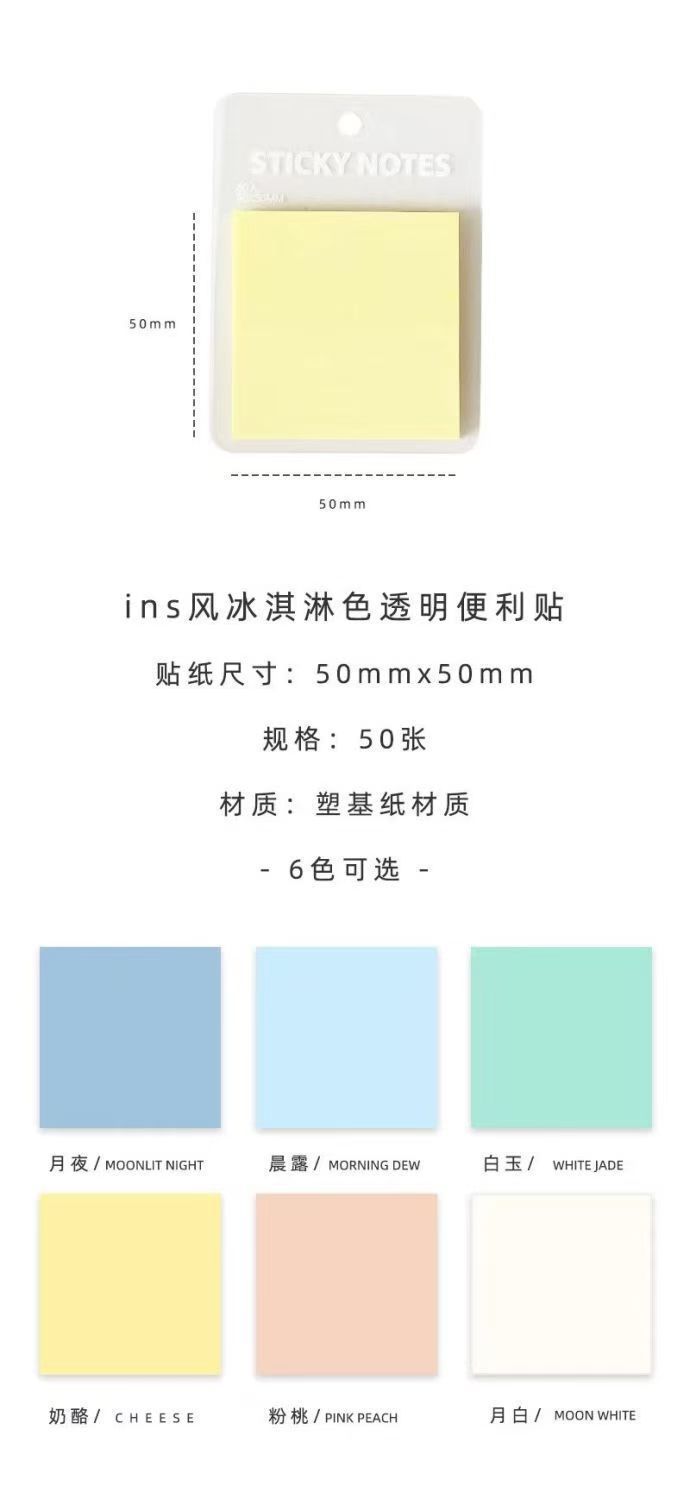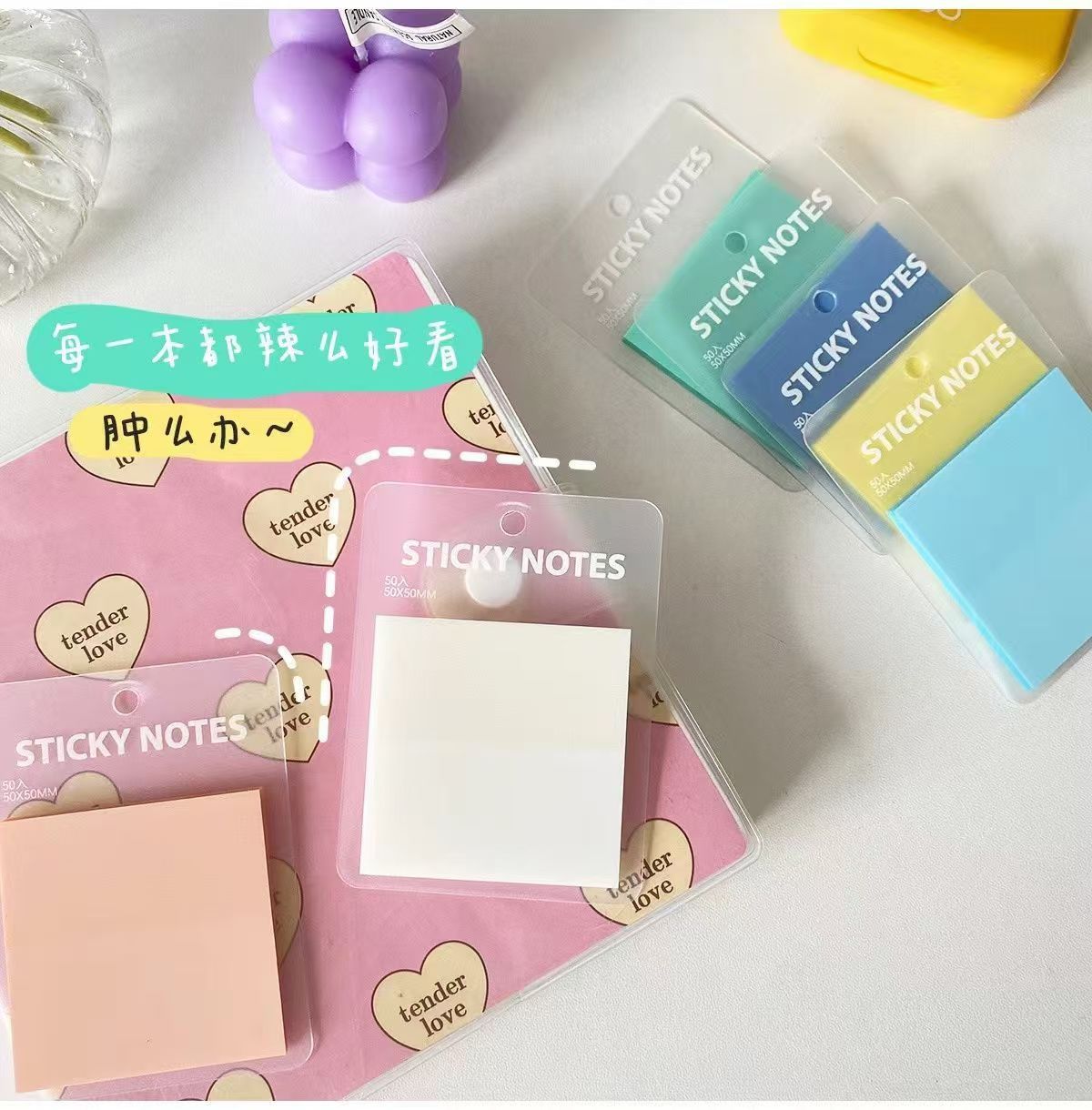 컬러 포스트잇, PET 투명 모란디 색상 정사각형, 반복 사용 가능한 포스트잇, 중요 포인트 표시용 작은 메모지