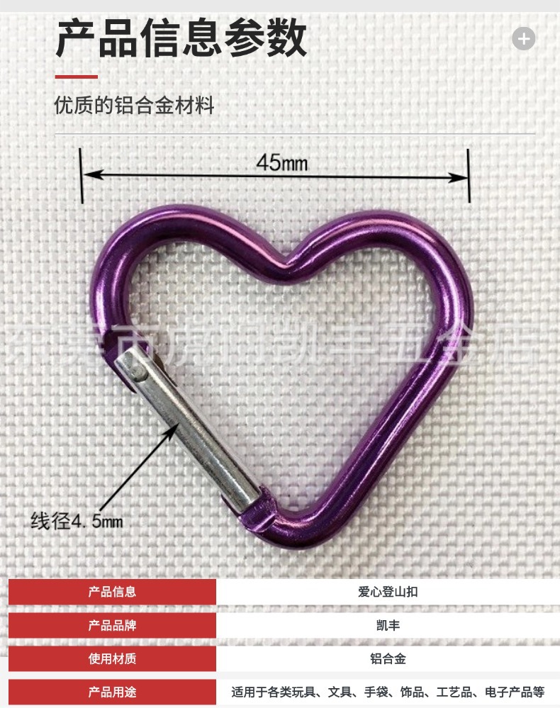 No.5 사랑 등산 버클 백팩 외부 봄 하트 모양의 장난감 수하물 주전자 버클 알루미늄 합금 등산 버클 후크