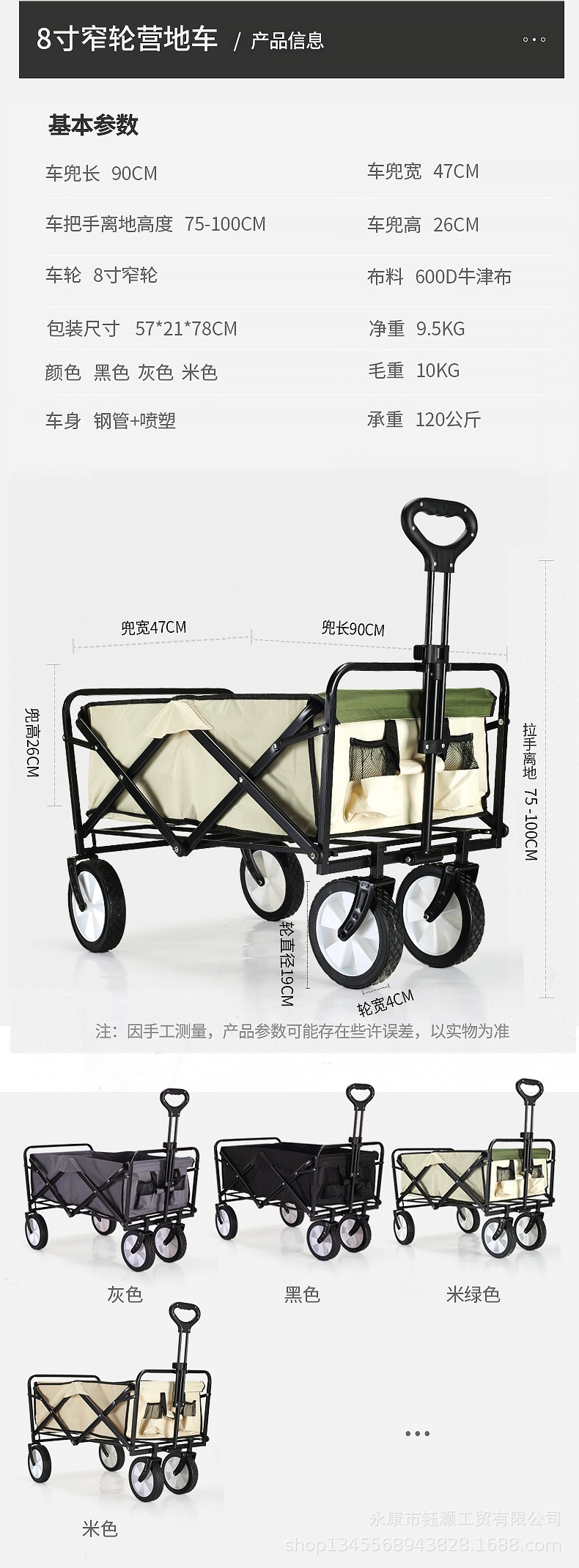 8 인치 도매 헤어 야외 캠핑 카트 캠프 자동차 접이식 휴대용 피크닉 작은 푸시 풀 트레일러 구매스토어 가기