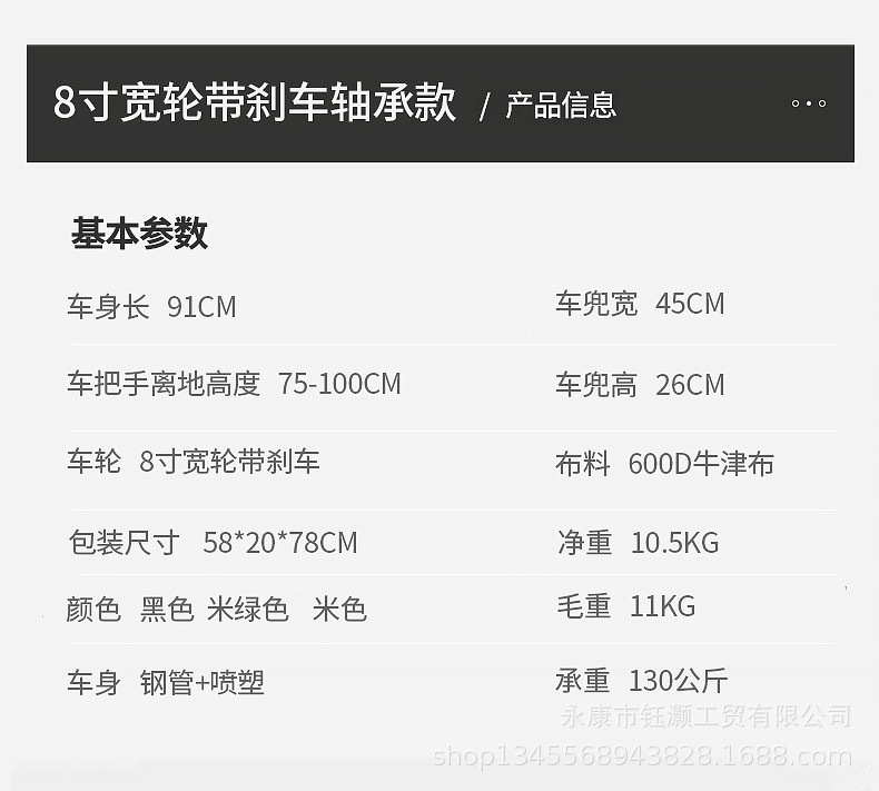 • 8inch 더블 브레이크가 장착된 검정색 휠 + 먼지 커버가 포함된 베이지색 가방(자동 리바운드 기능이 있는 업그레이드된 팔걸이)