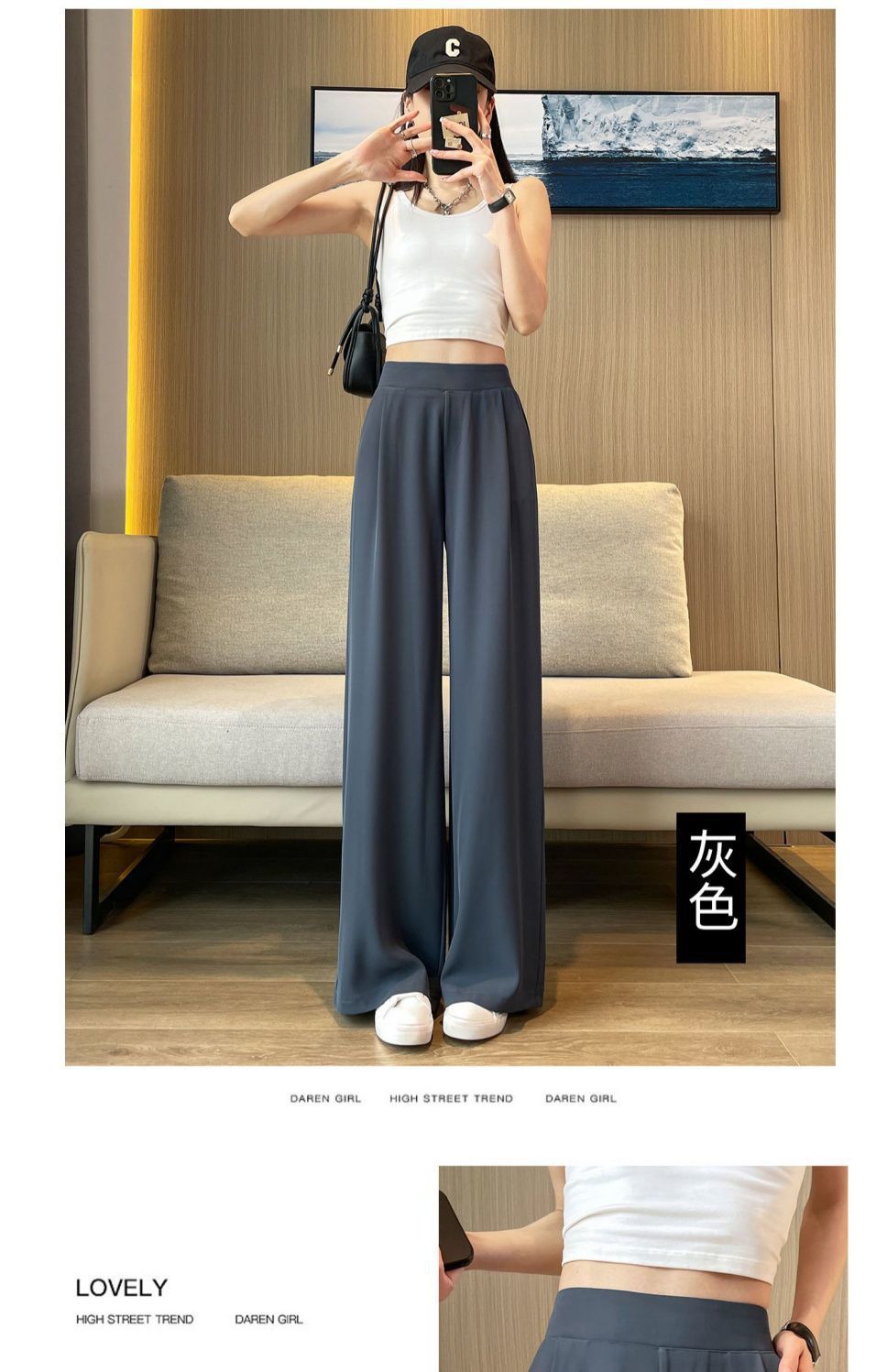 여성 여름 얇은 높은 허리 더미 넓은 다리 바지 2025 새로운 캐주얼 좁은 판 스트레이트 여성 바지 봄과 가을스토어 가기