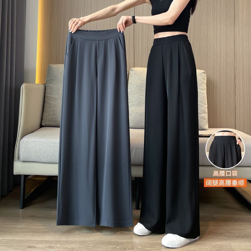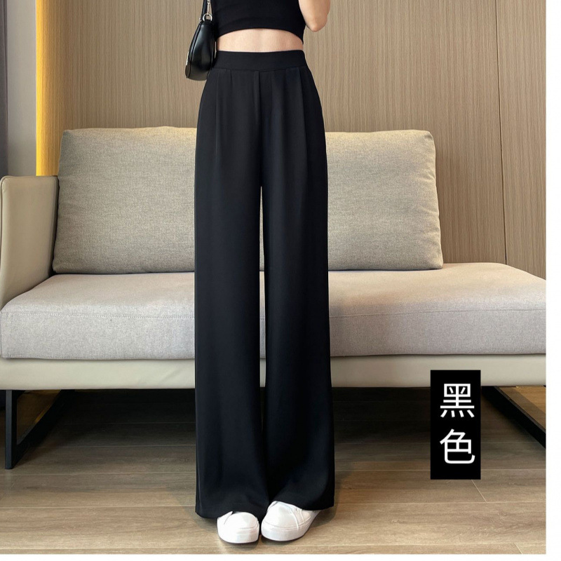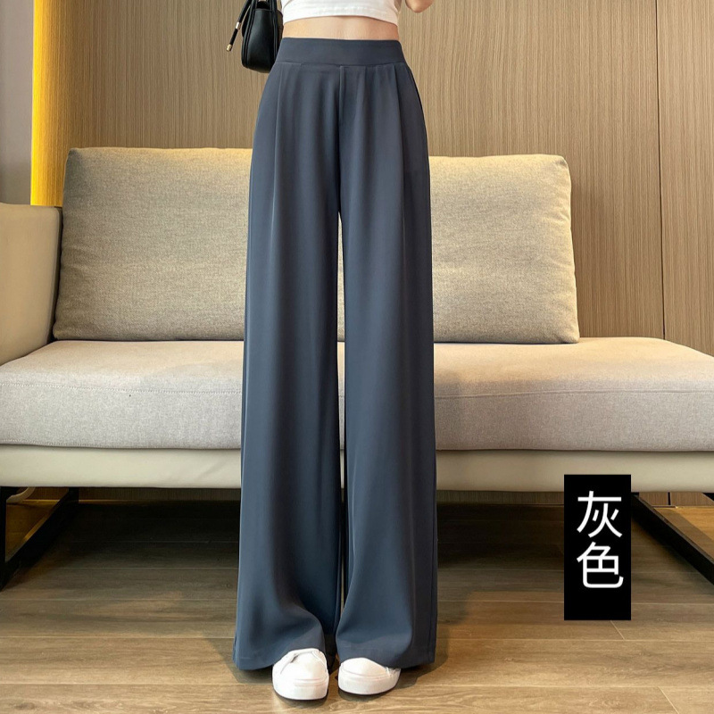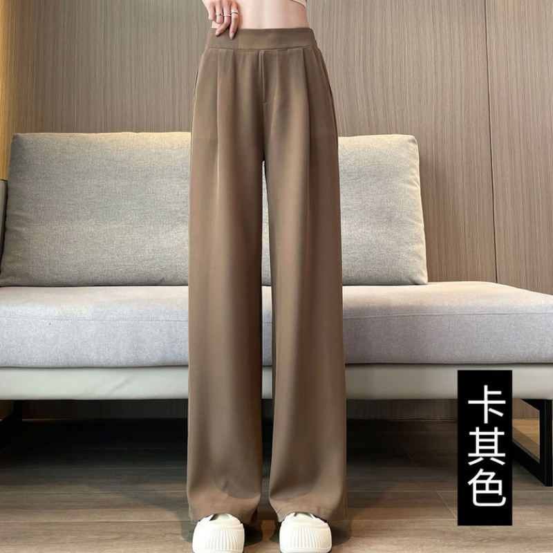 여성 여름 얇은 높은 허리 더미 넓은 다리 바지 2025 새로운 캐주얼 좁은 판 스트레이트 여성 바지 봄과 가을