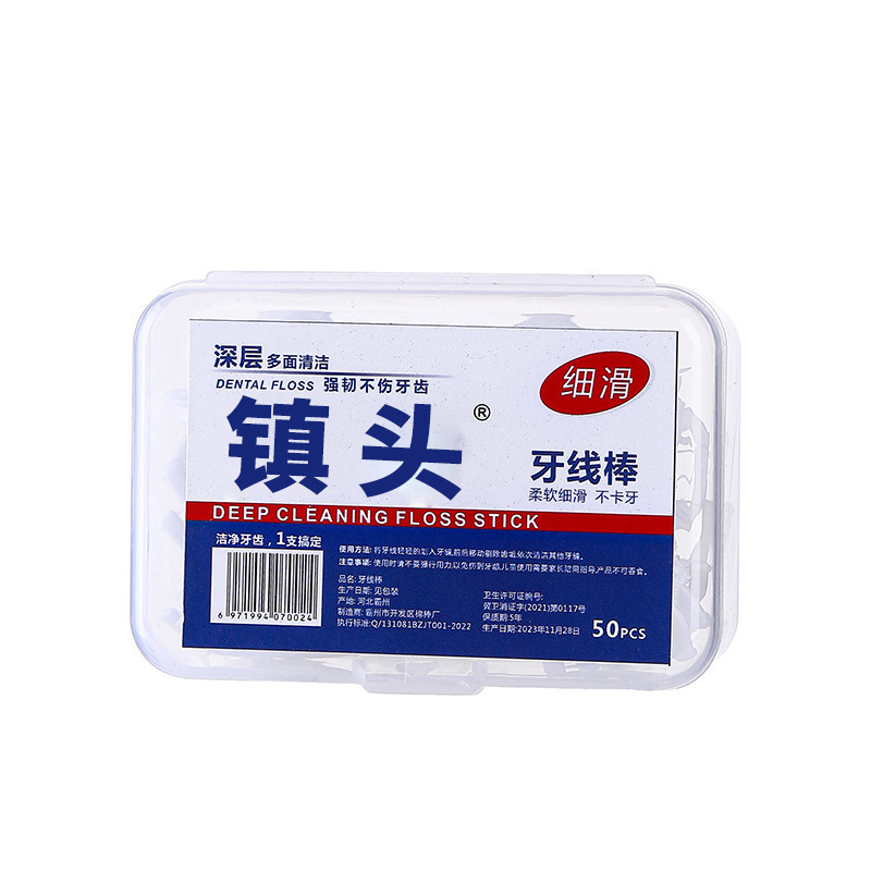 牙线50支盒装超细牙线棒 家庭装塑料牙签弓形盒装剔牙线百货批发