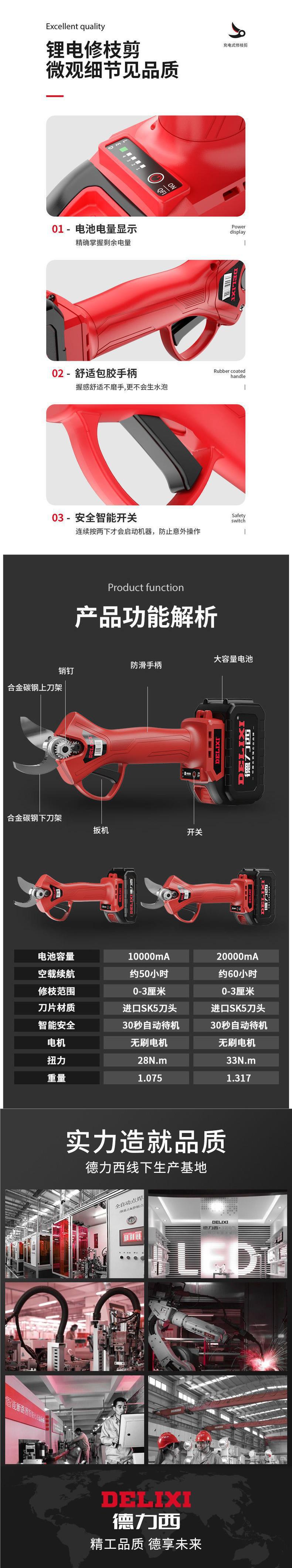 Delixi 전기 가지 가위 전문 리튬 전기 정원 가위 가정용 충전식 휴대용 거친 과일 지점 가위