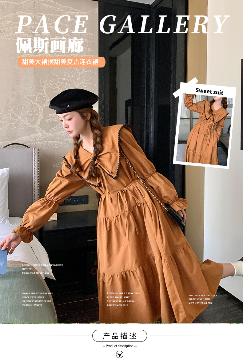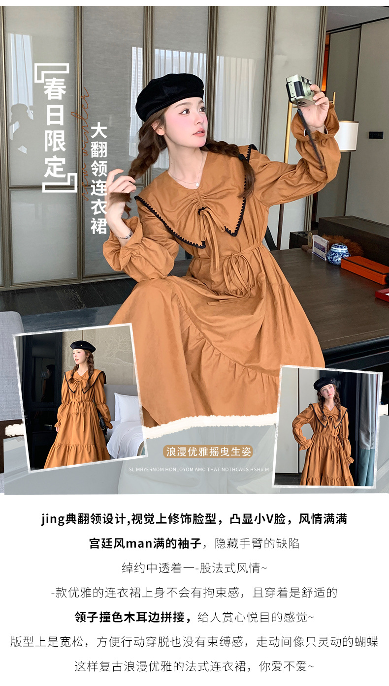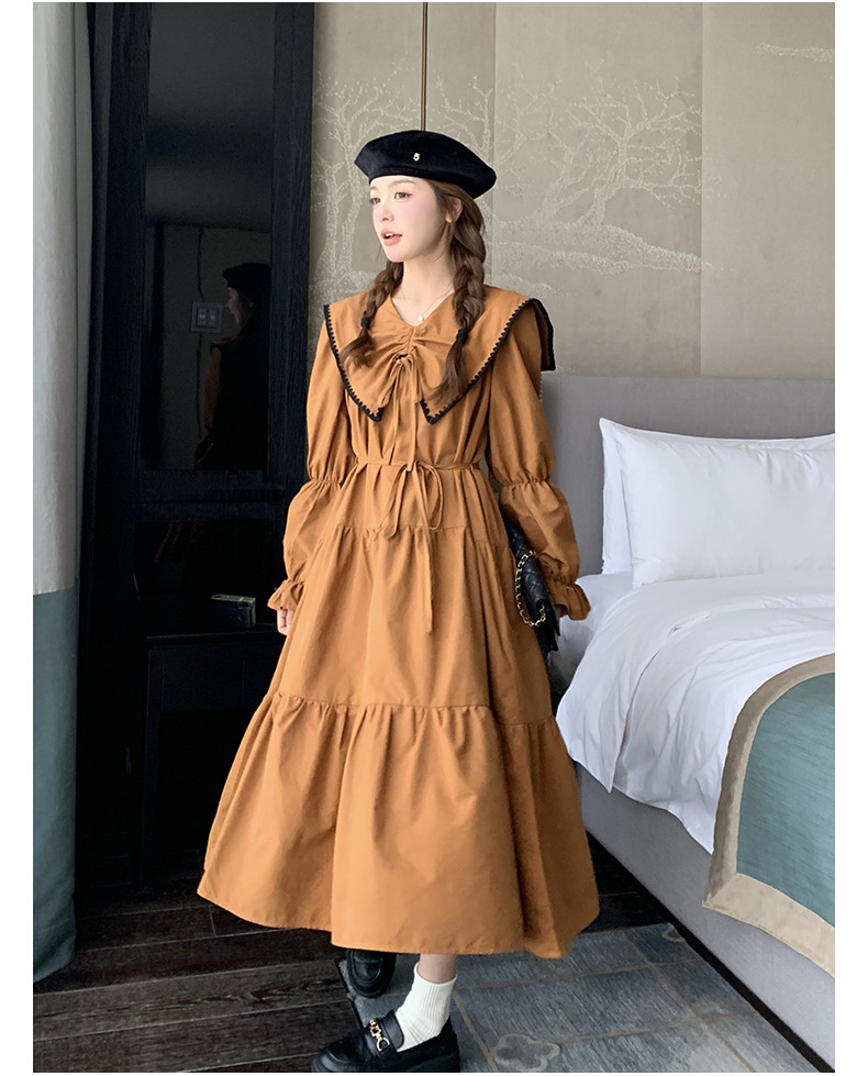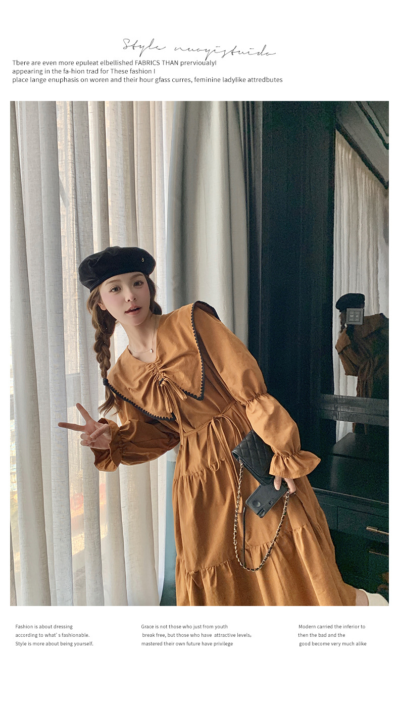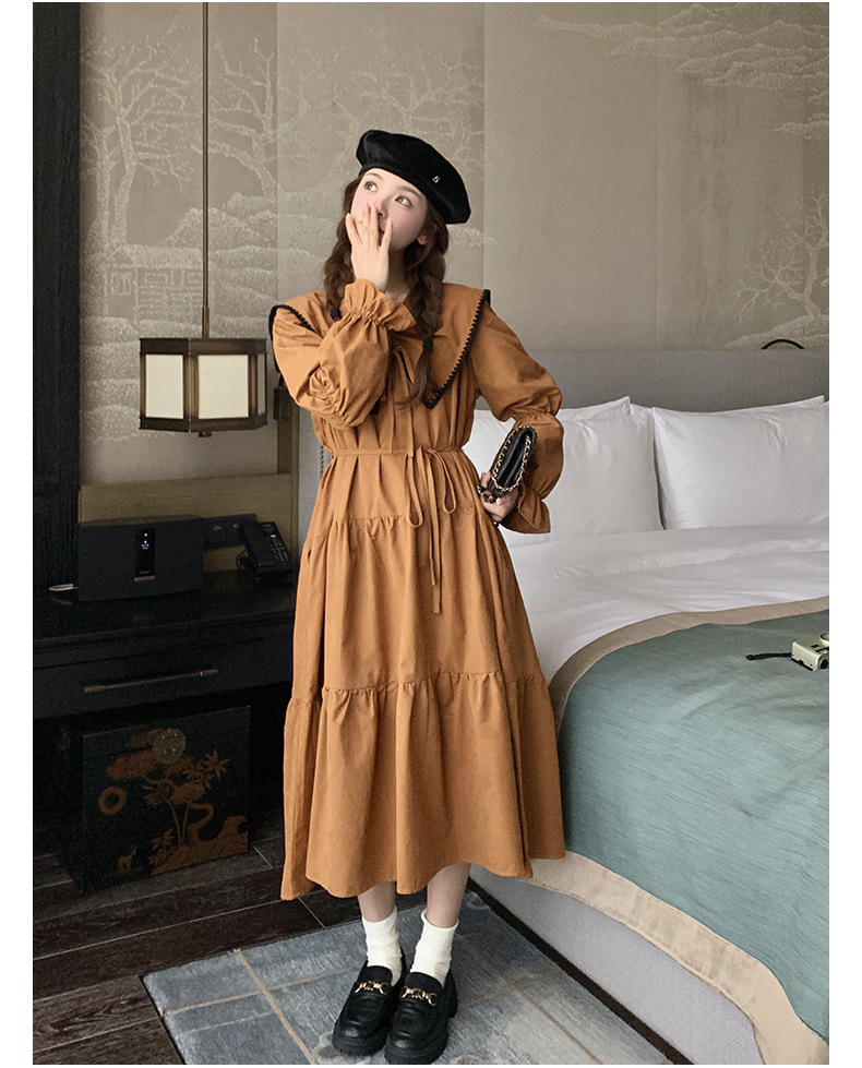 [멩메이] 25 봄 우아한 프랑스 호박 컬러 인형 칼라 긴 소매 원피스 여성의 부드러운 스타일 기질 긴 원피스 패션스토어 가기
