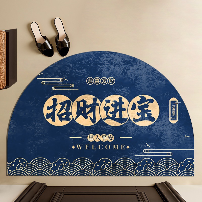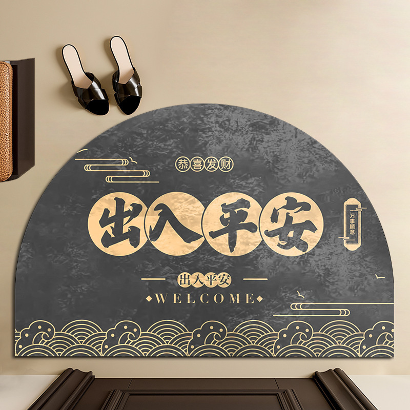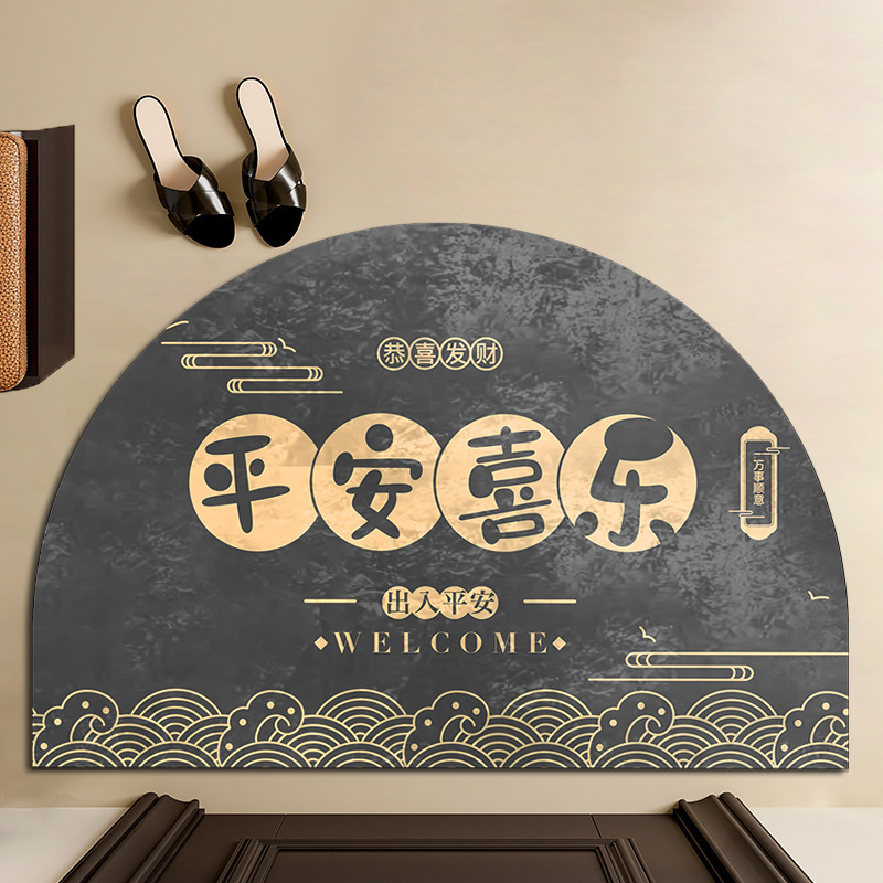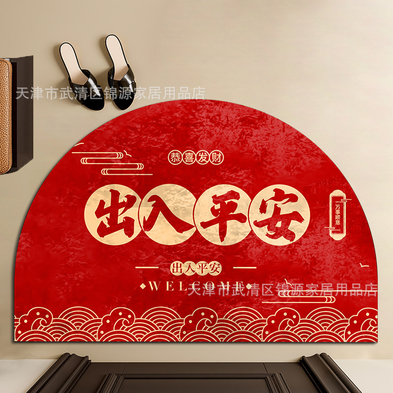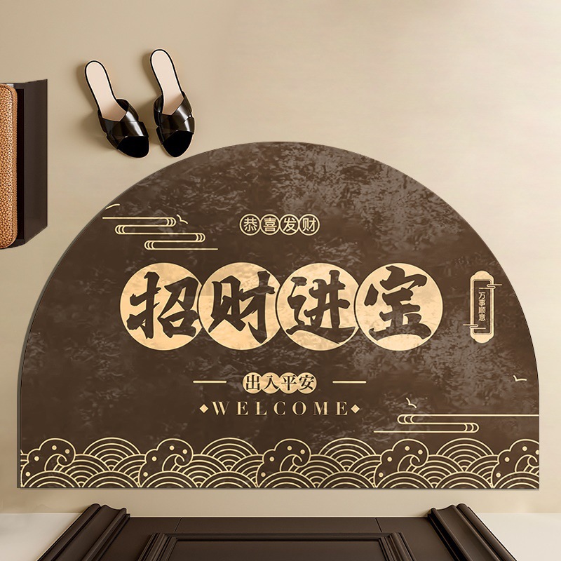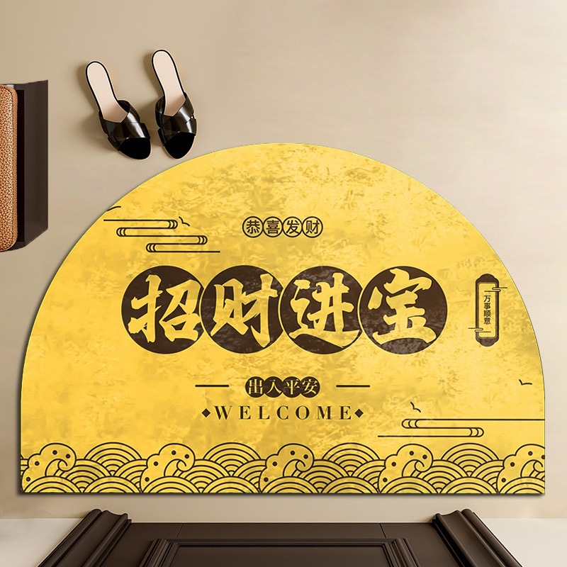 방수 및 관리가 쉬운 반원형 크리스탈 벨벳 카펫, 행운을 불러오는 현관용 미끄럼 방지 발매트