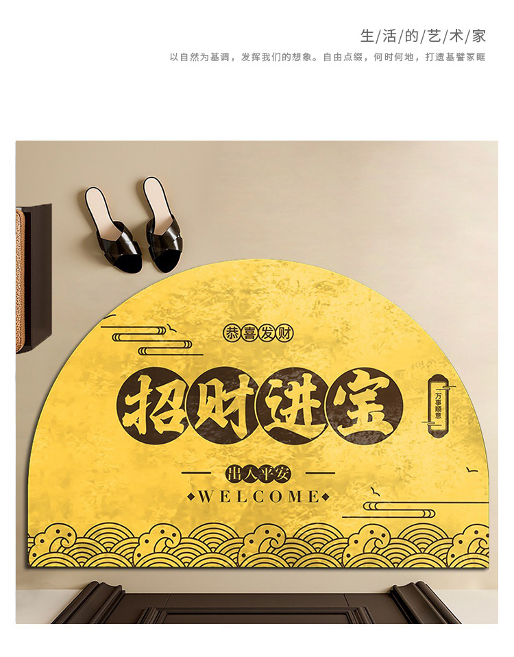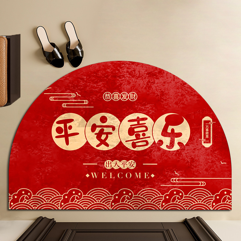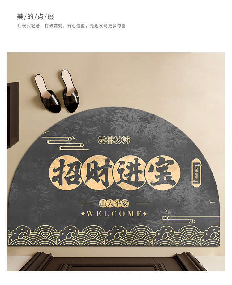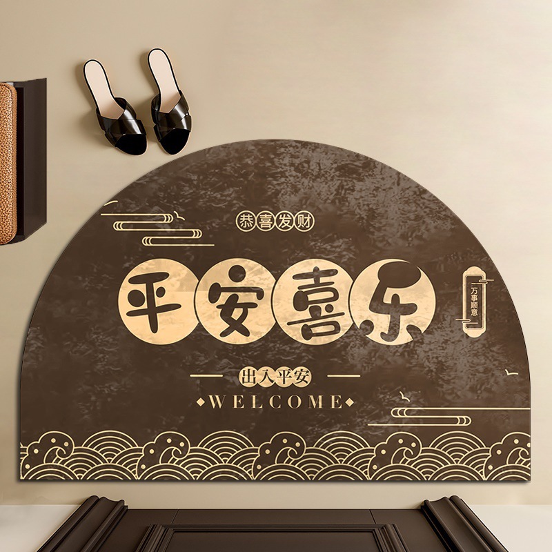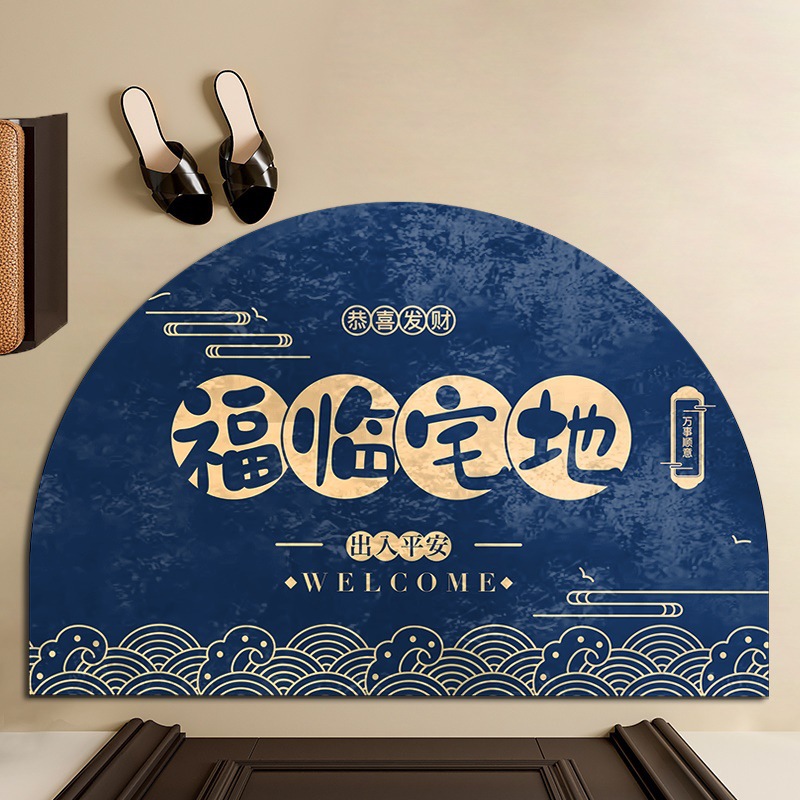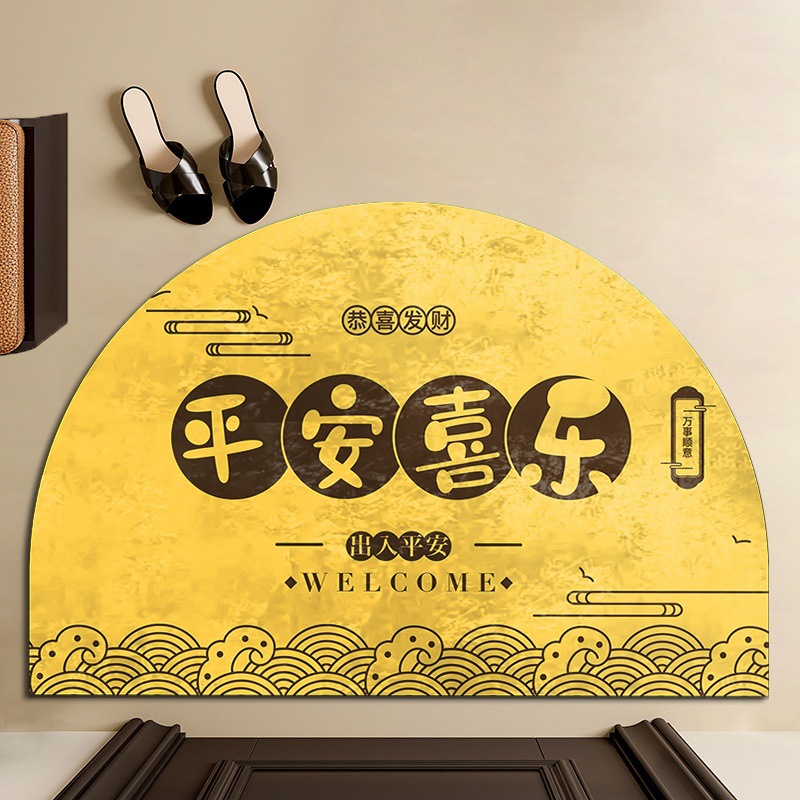방수 및 관리가 쉬운 반원형 크리스탈 벨벳 카펫, 행운을 불러오는 현관용 미끄럼 방지 발매트