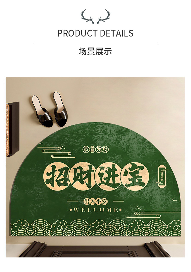 방수 및 관리가 쉬운 반원형 크리스탈 벨벳 카펫, 행운을 불러오는 현관용 미끄럼 방지 발매트스토어 가기