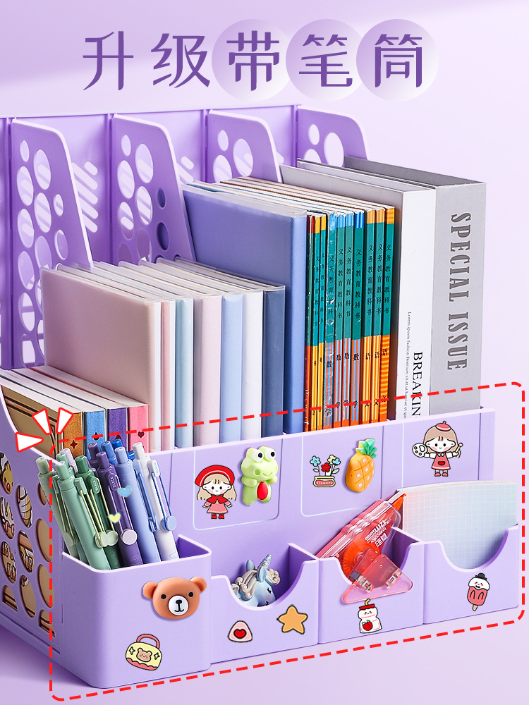 책장 책 스탠드 데스크톱 파일 프레임 책장 4 폴더 저장 상자 책 스탠드 파일 랙 책상 재료스토어 가기