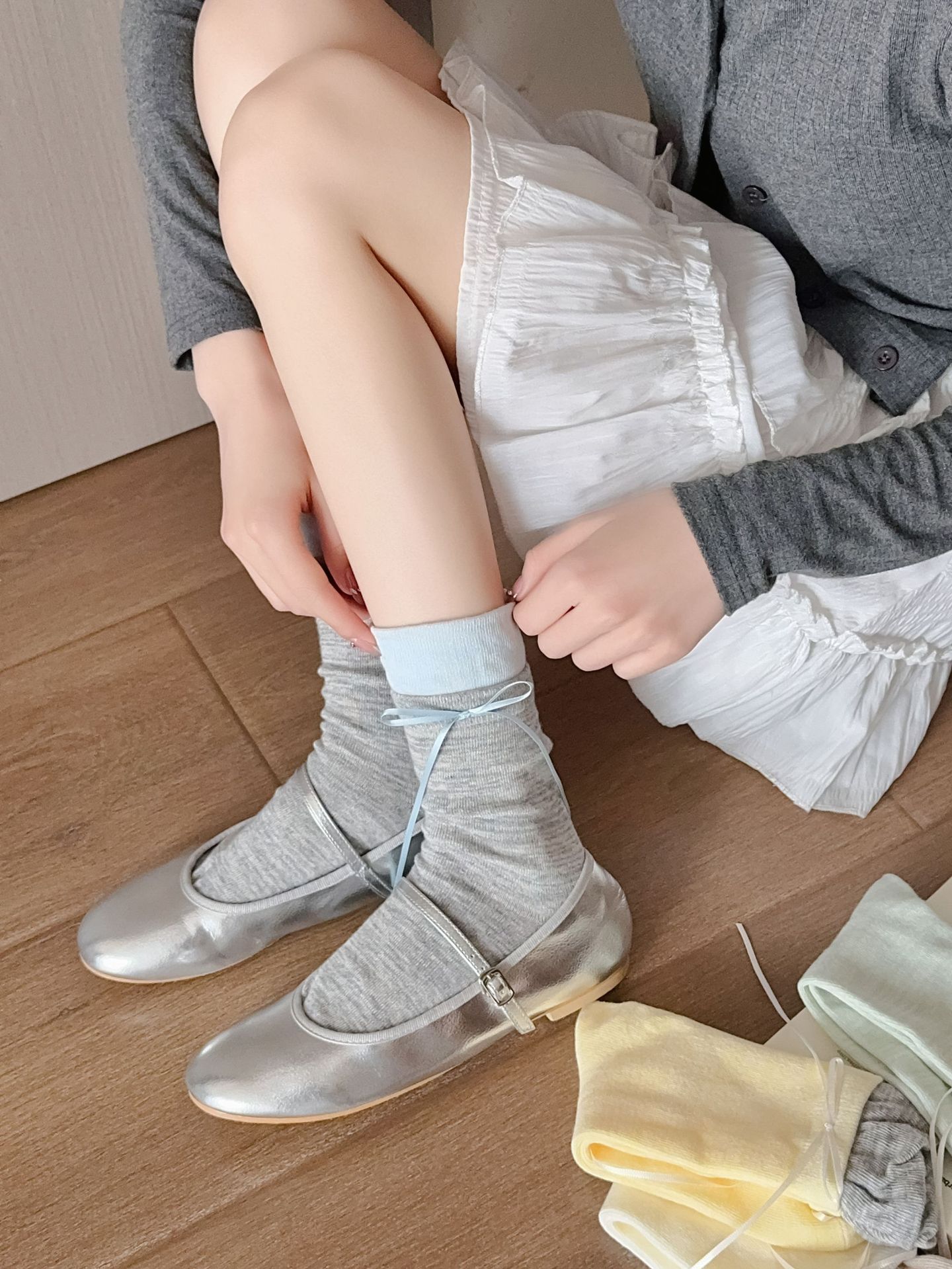 발레 스타일 양말 여성의 봄과 여름 새로운 중간 튜브 양말 활 뼈없는 양말 더블 알 레이스 더미 양말스토어 가기